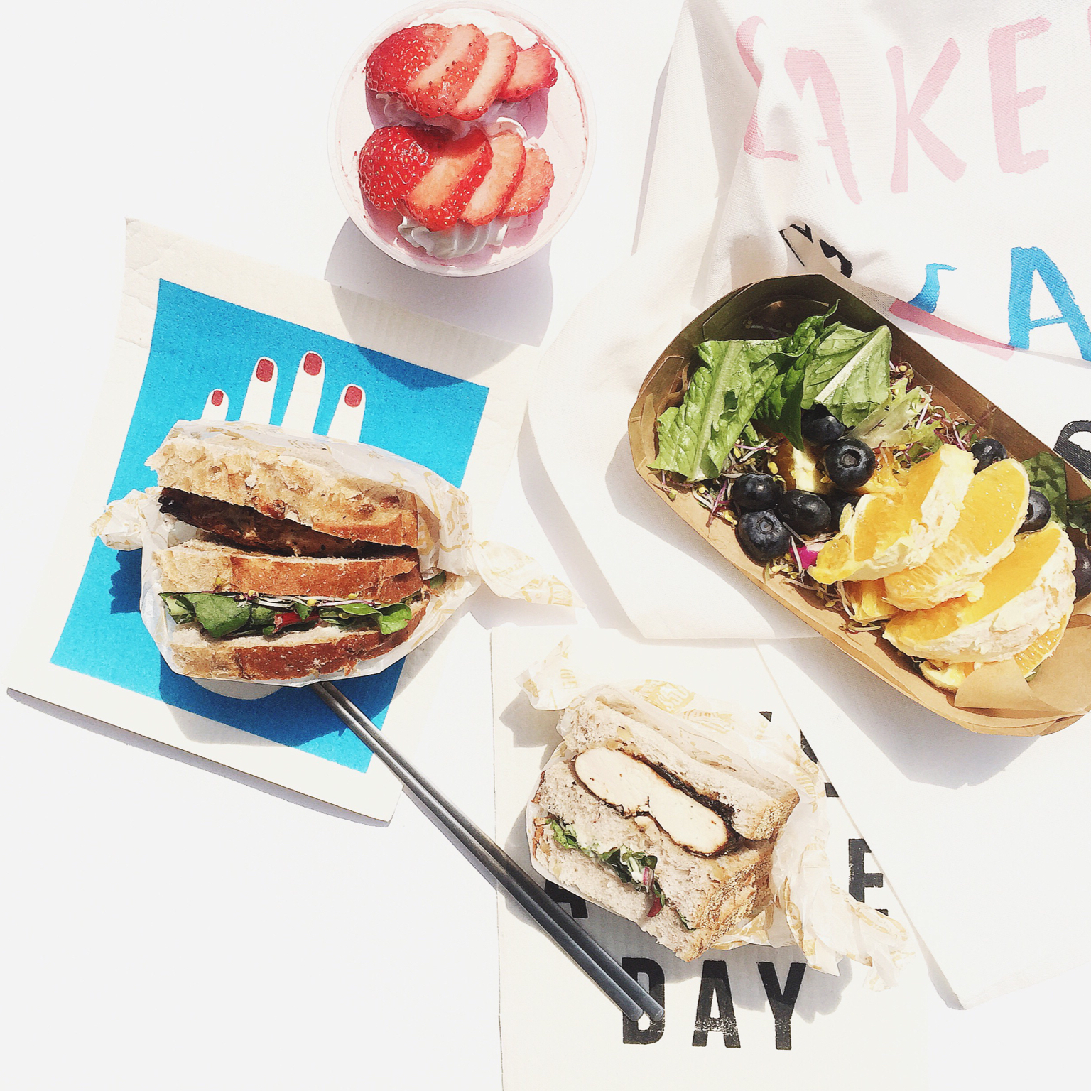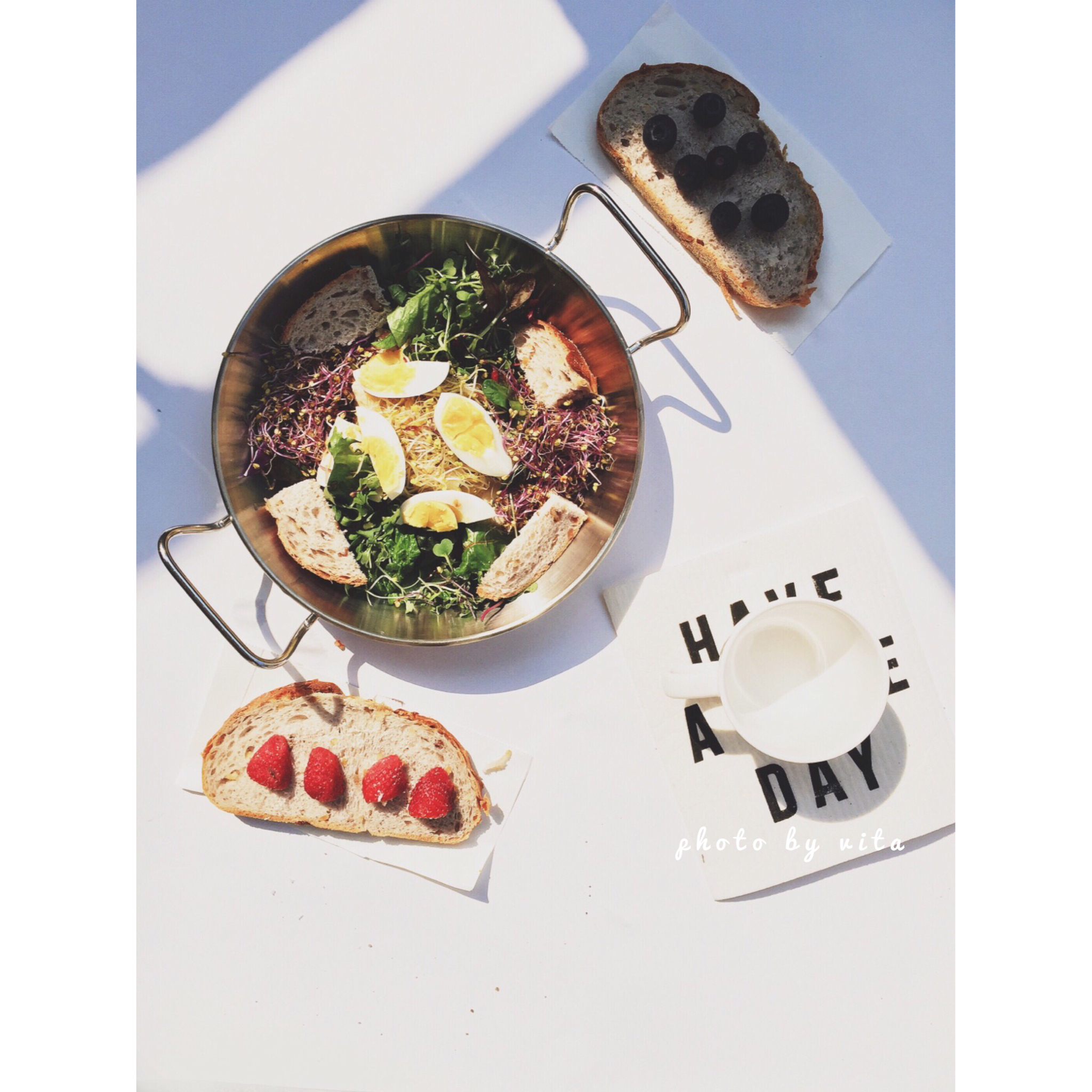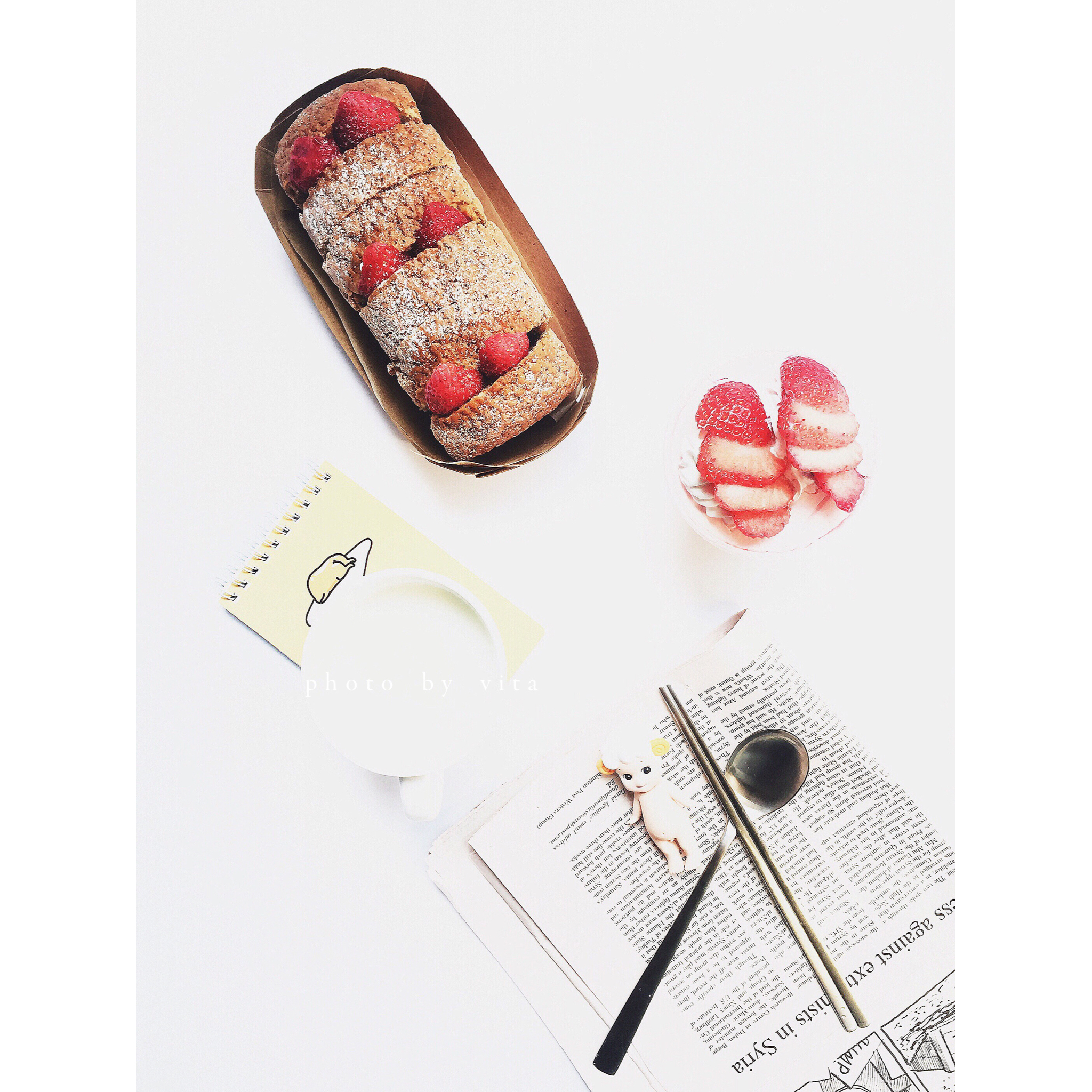 哎呀 韩国的菜好少 都是肉肉肉 只能自己买点沙拉拌着吃 不过有好多逼格很高的面包店 最近全都是草莓季好喜欢~ #vita...