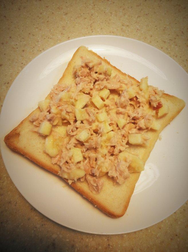 吞拿鱼和苹果或香蕉拌成沙拉确实是吐司的超级伴侣!苹果切成碎碎可以增添口...
