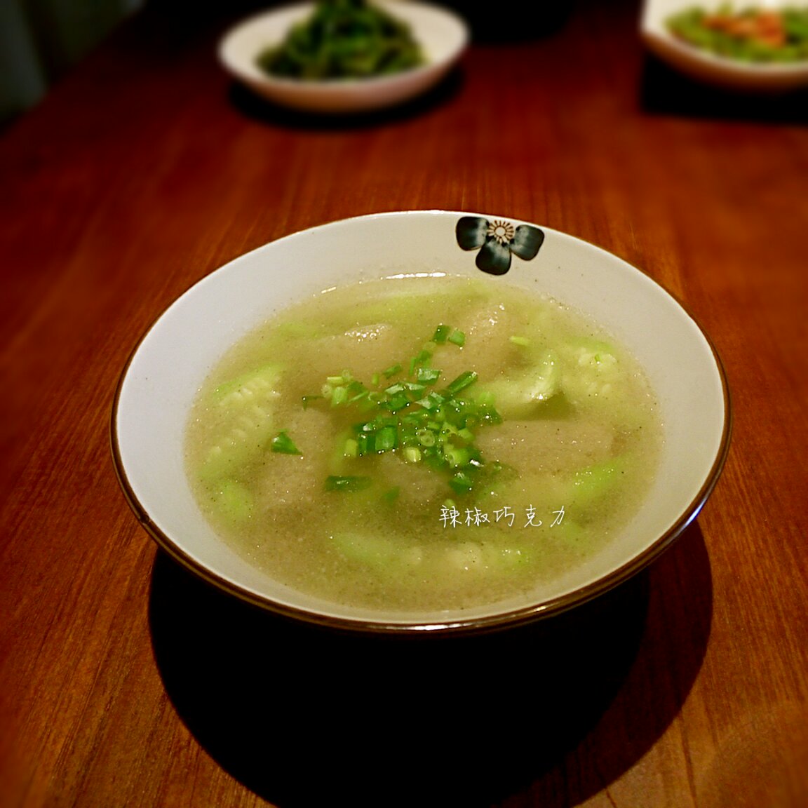 竹荪丝瓜汤、洋葱炒鸡蛋、耗油日本豆腐、凉拌黄瓜、五花肉炖土豆...