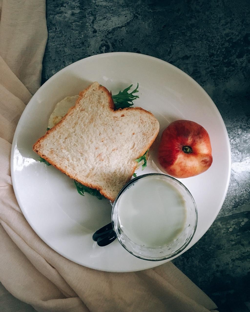 D30 奶酪鸡蛋三文治+蟠桃+黑豆浆