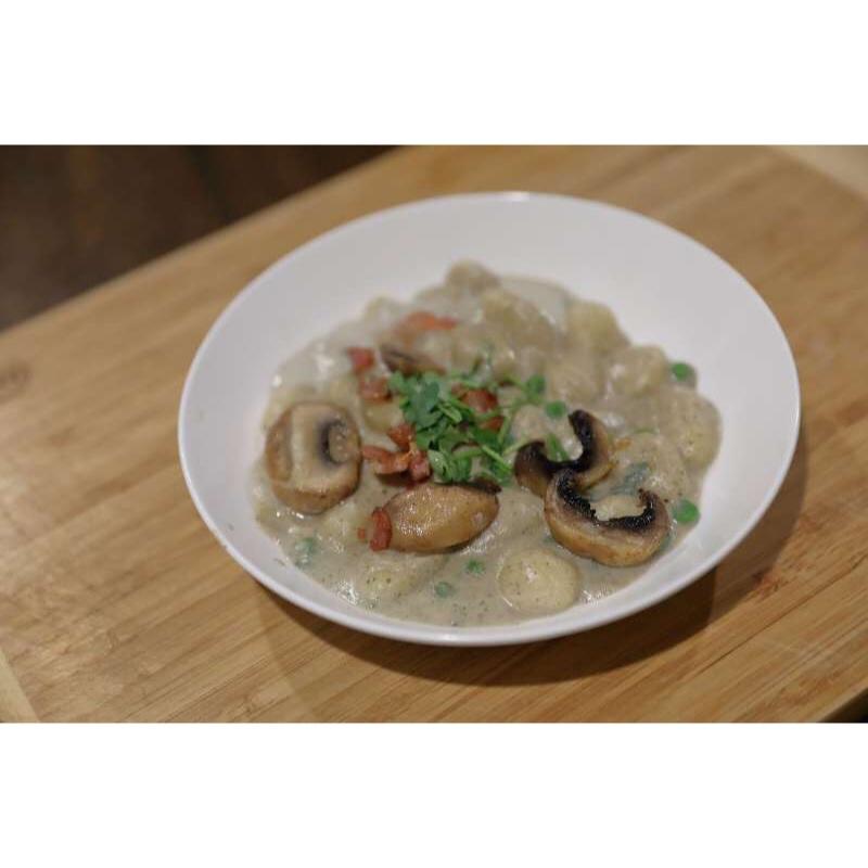 自己做了奶油蘑菇酱,配培根碎,这碗gnorcchi给自己打99分,差一分因为小伙伴不够吃哈哈
