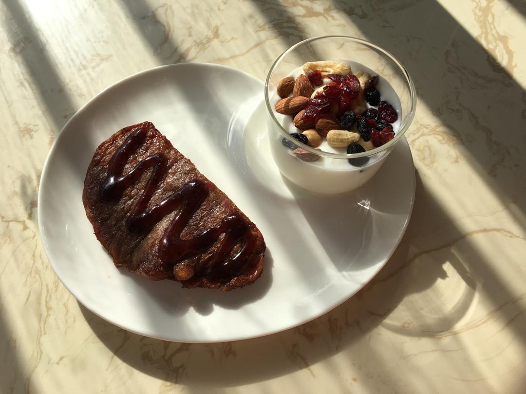 空气炸锅牛排,坚果酸奶