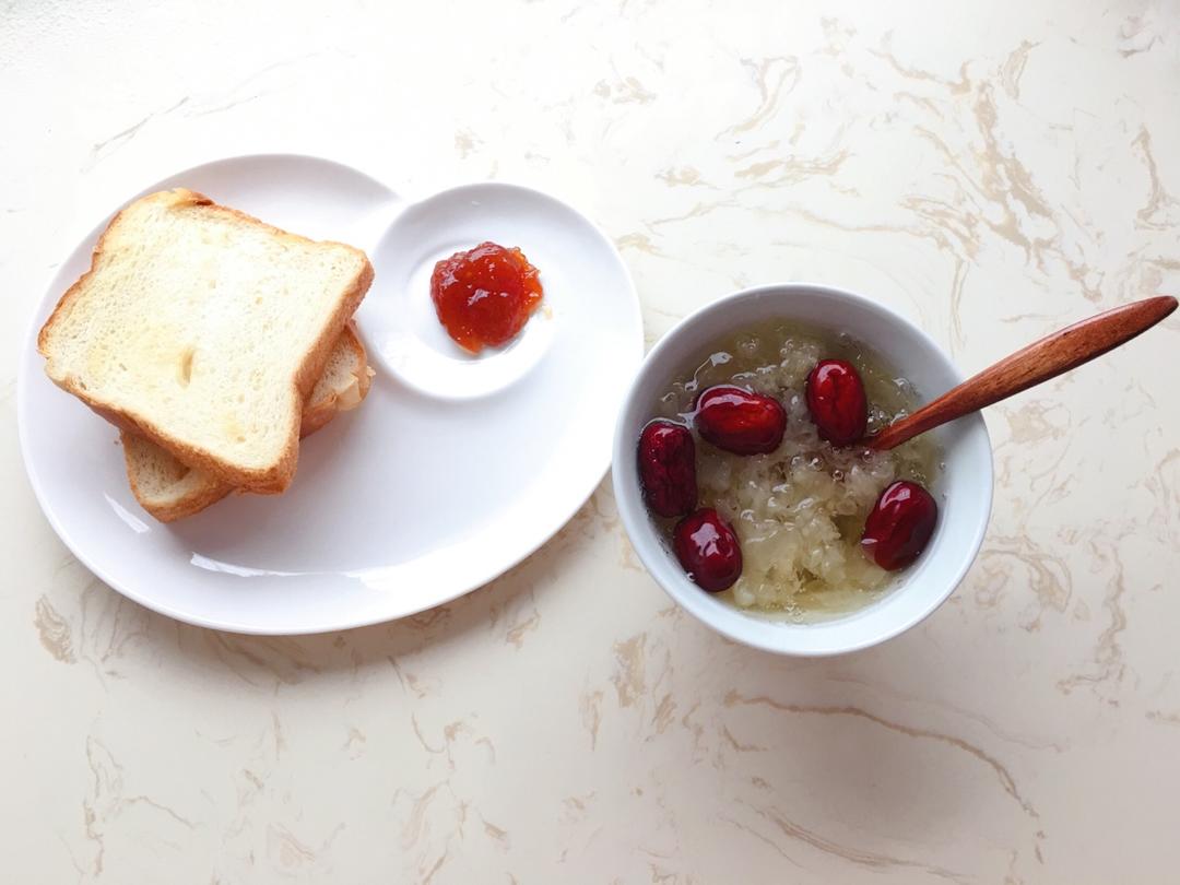 椰香土司,香草杏酱,红枣银耳...