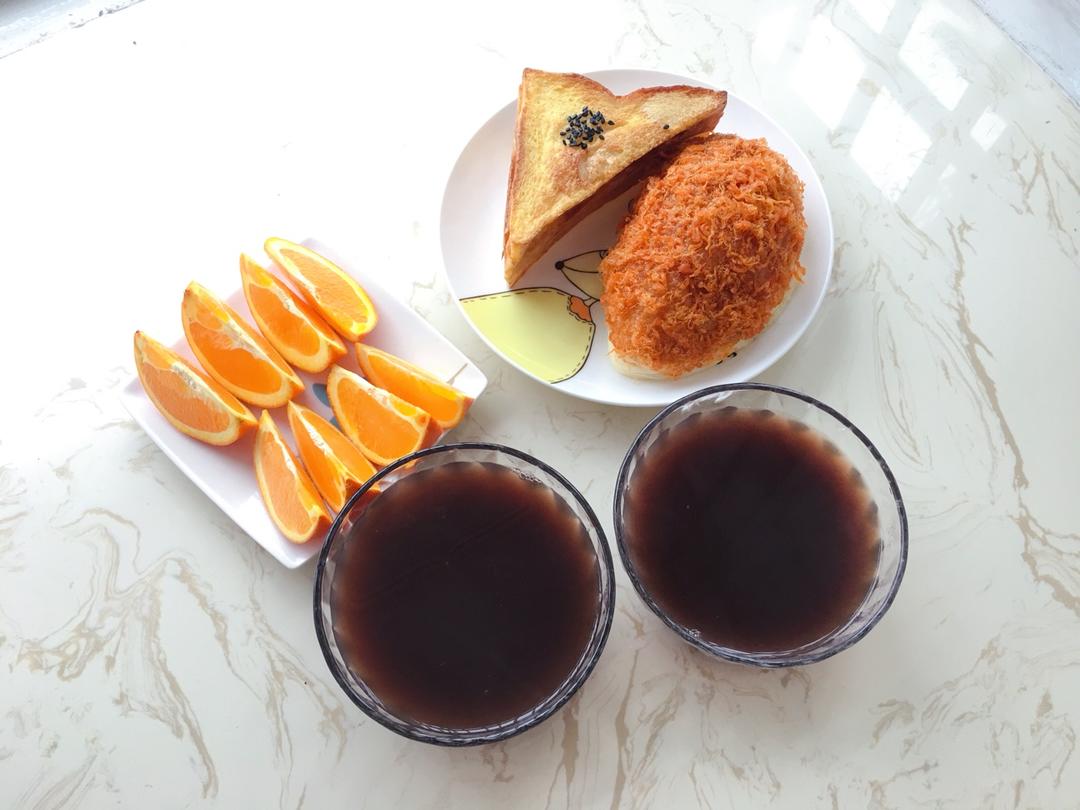 面包、红豆汤、橙子🍊。