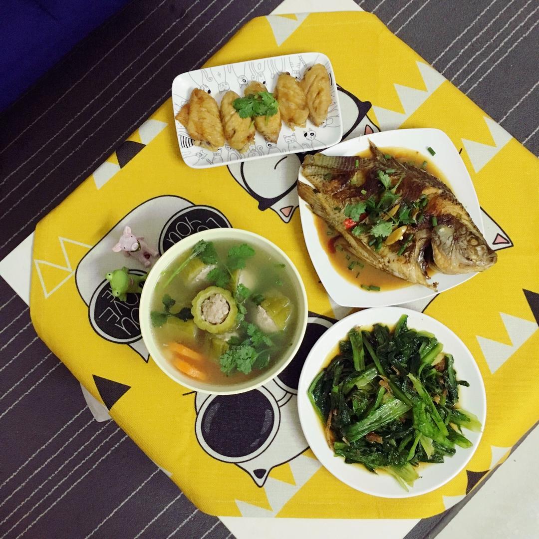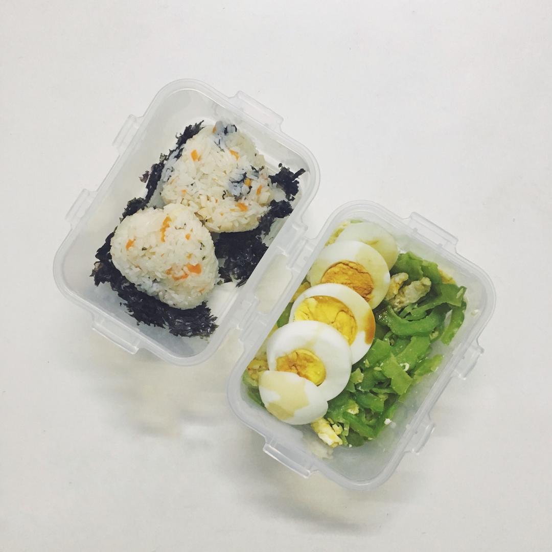 鱿鱼胡萝卜饭团+苦瓜炒蛋+整蛋