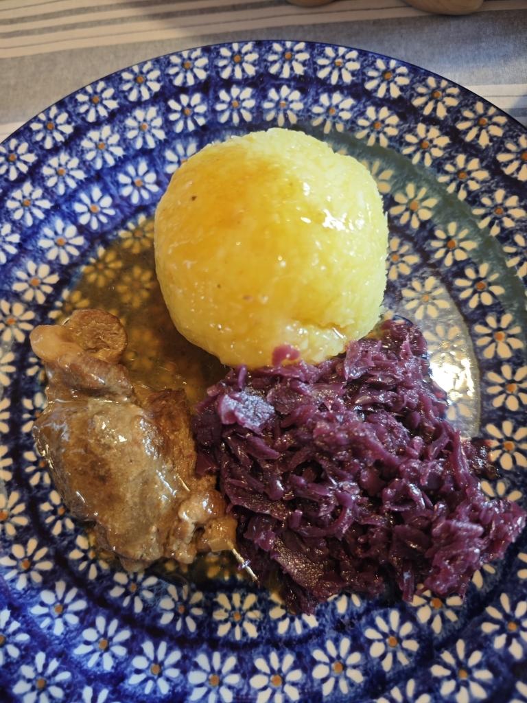 德国典型的特色主食: 生土豆和熟土豆各一半混在一起,搓成团子,中间包入用黄油煎酥了的面包碎,放入开水里,...