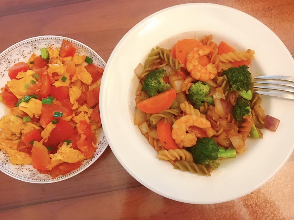 加了烤花菜和鸡胸蛋清饼,完美的一餐