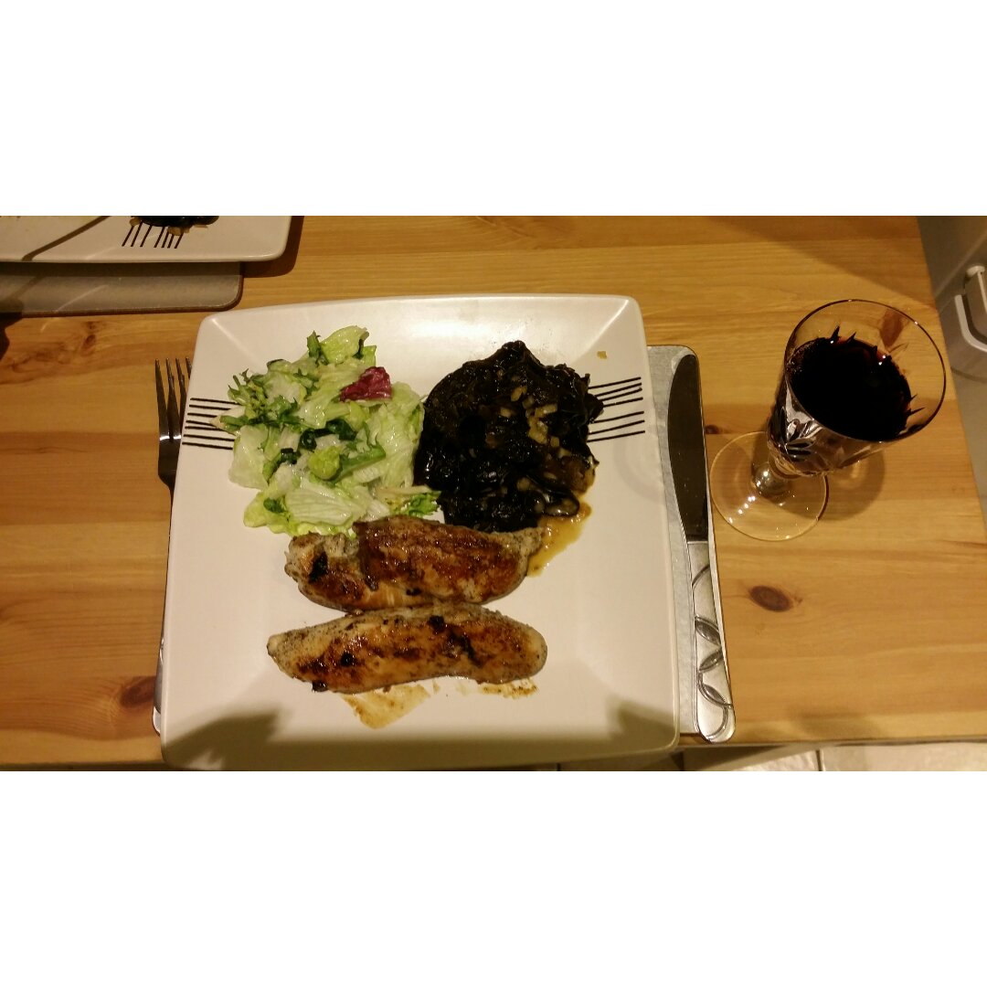 很简单,还美味。得到了老公的称赞~他始终认为鸡胸是最美味的,因为比较笨,鸡翅鸡腿都吃不来…哈