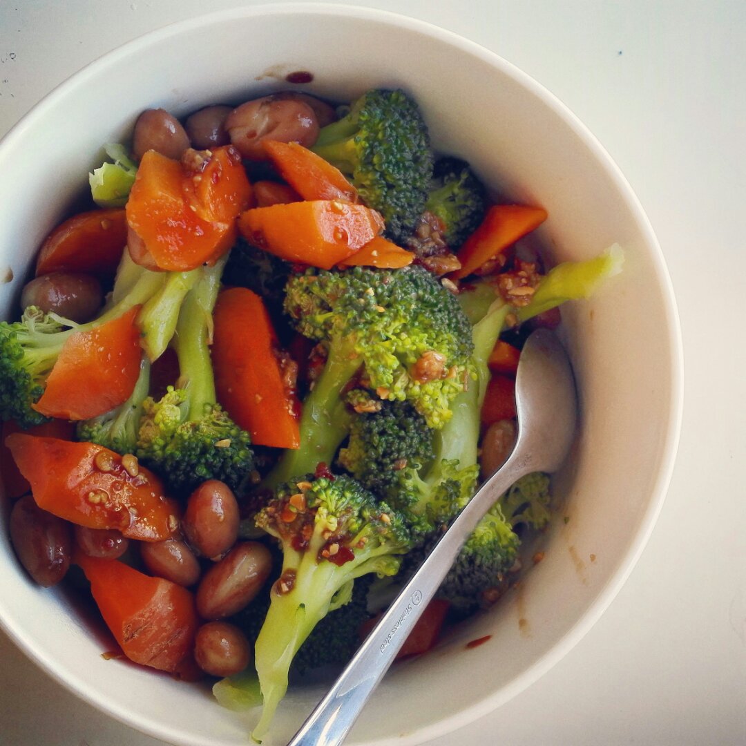 西兰花胡萝卜白扁豆沙拉,配味增沙拉汁。味增沙拉汁前段时间就看到了,说是适合根茎类蔬菜沙拉。...