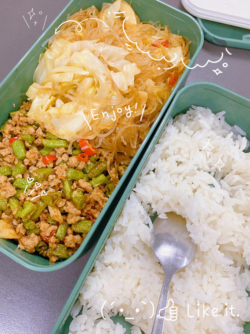 豆角肉沫,粉丝包菜