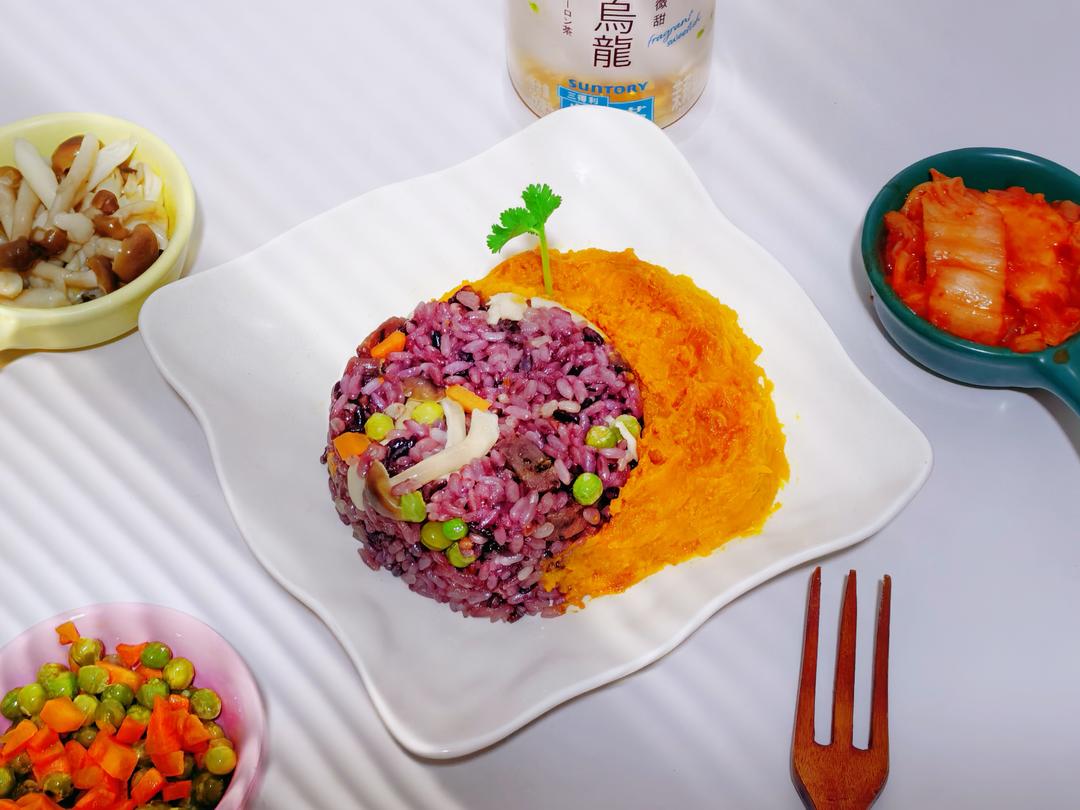 梅干菜香肠菌菇七色糙米拌饭