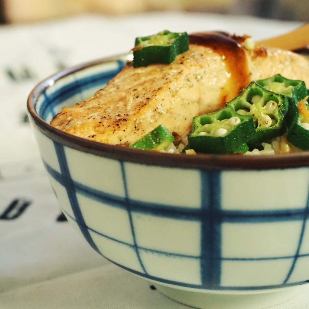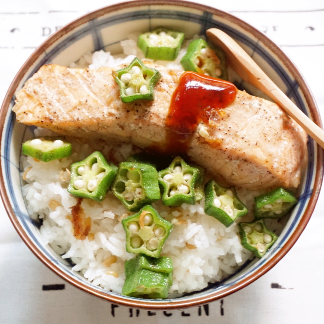 #Fried Salmon with Okra#