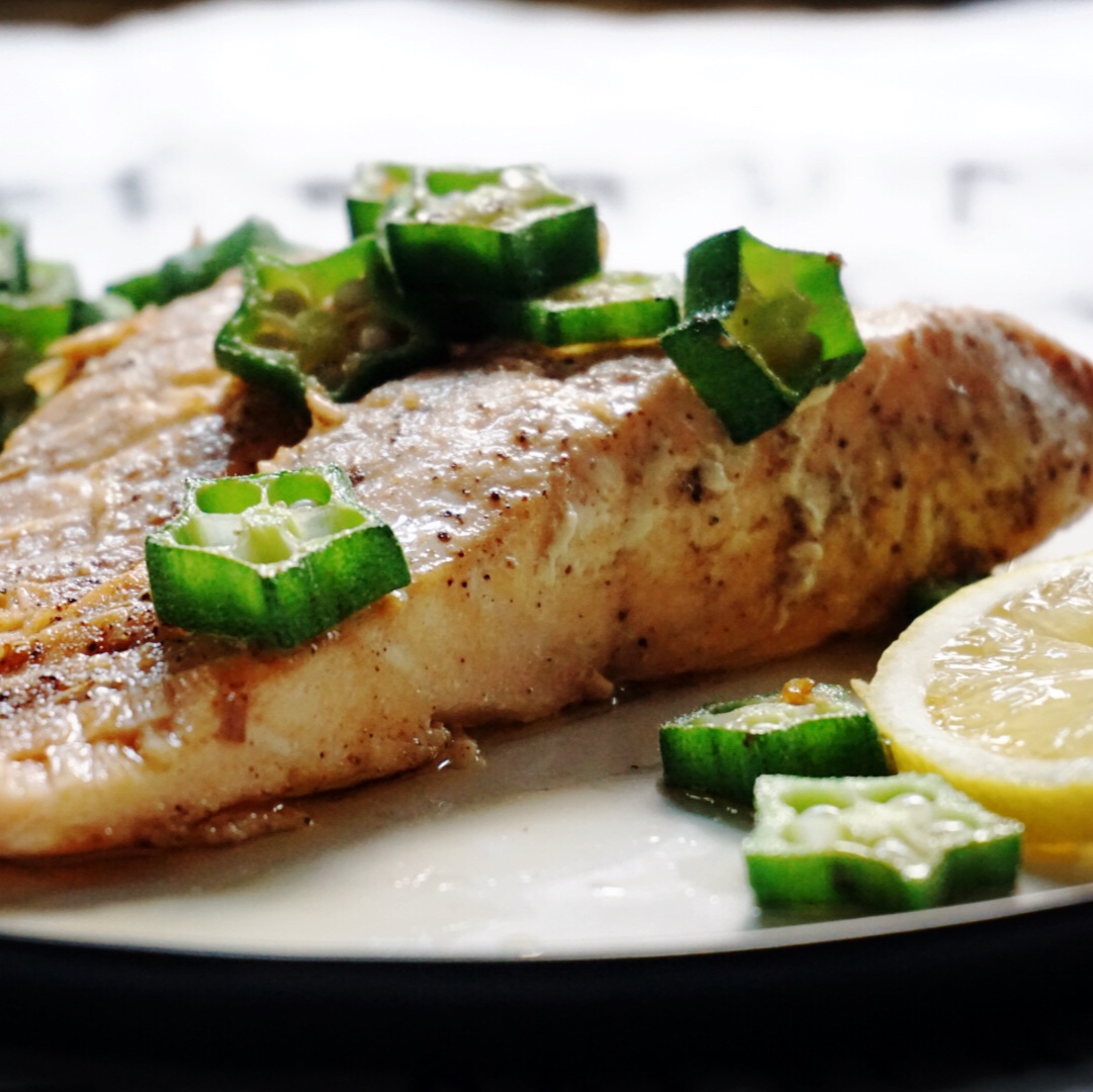 Fried Salmon with Okra