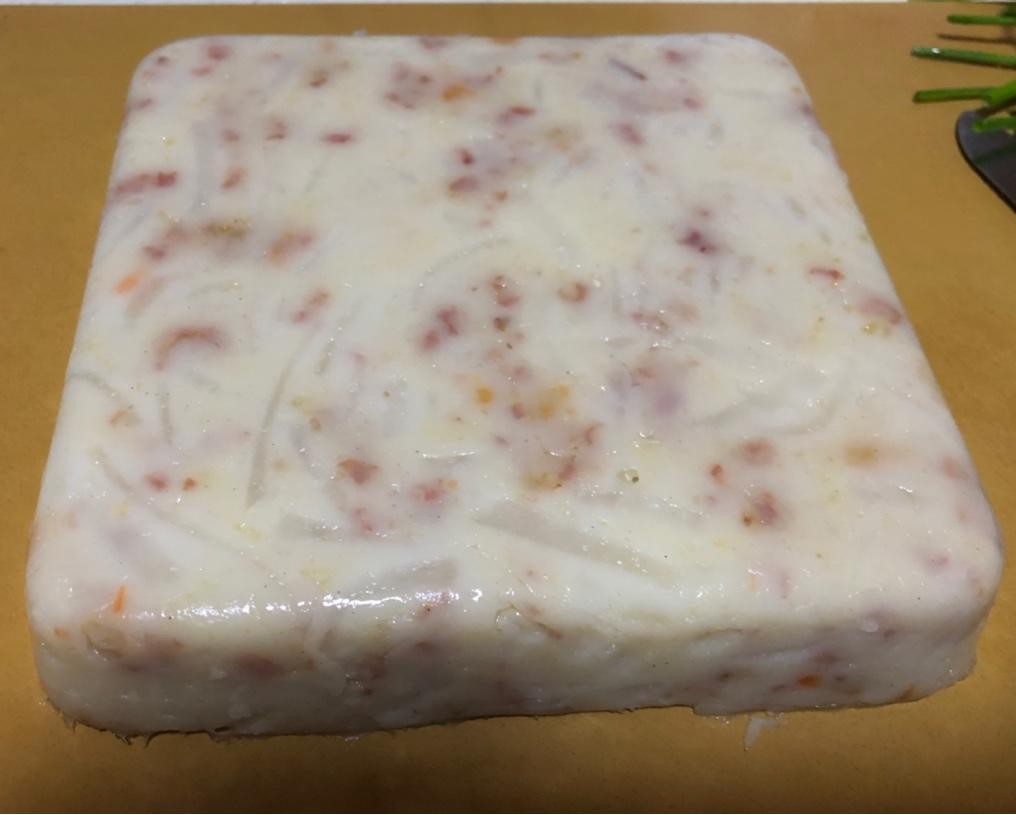萝卜糕:腊肠,虾米,火腿丝,蒜苗,盐,糖。763