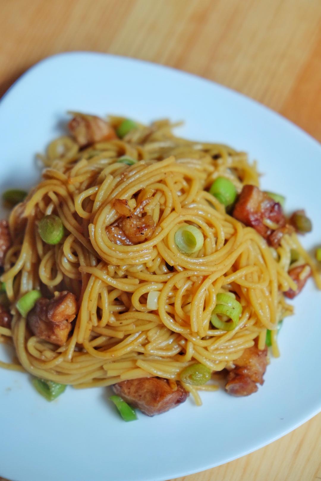 鸡腿肉 面条 黄灯笼辣酱 泡椒 青蒜