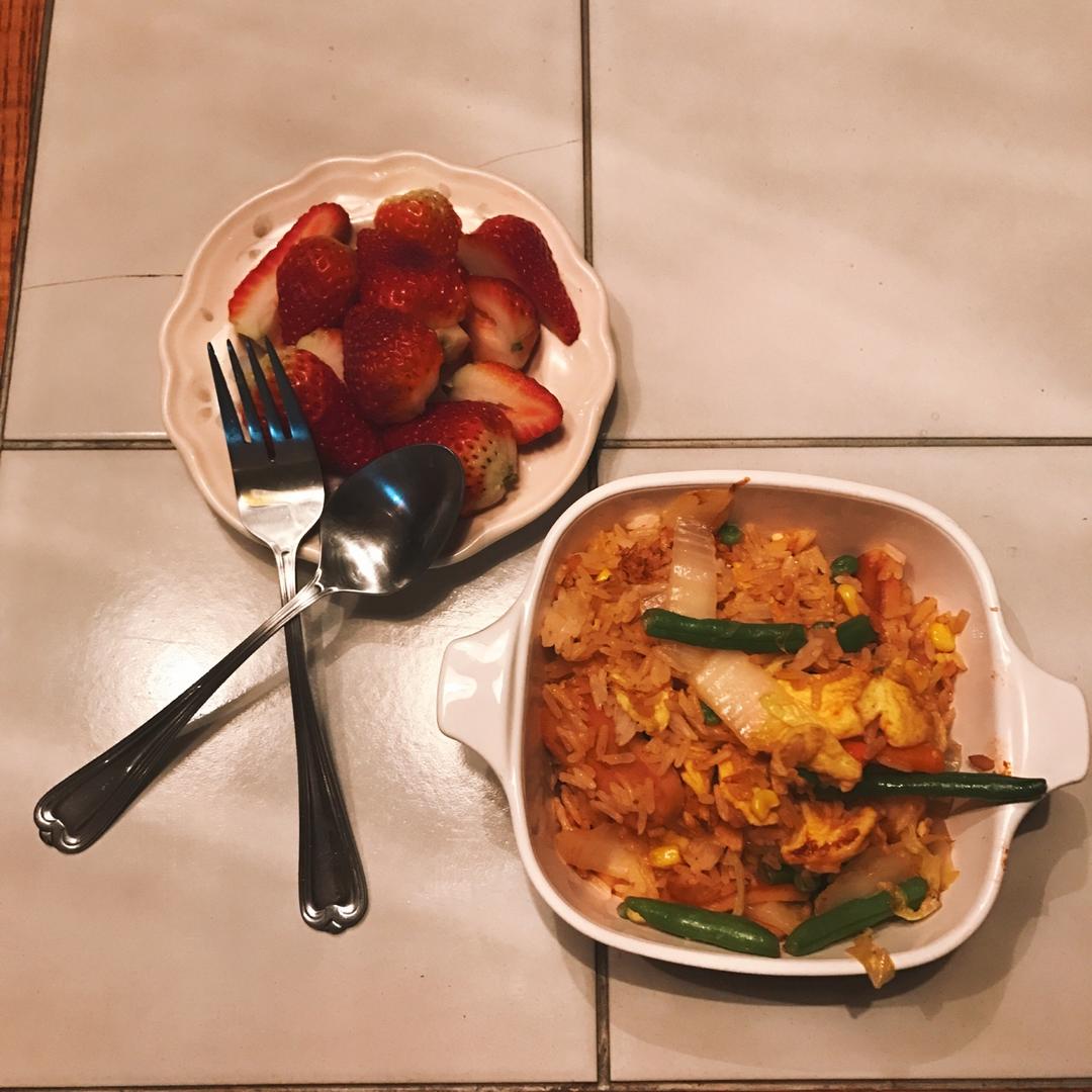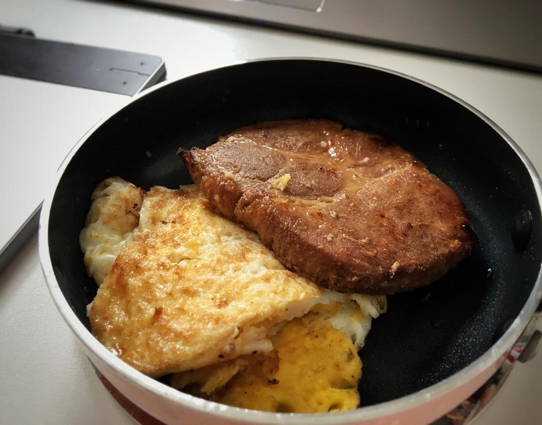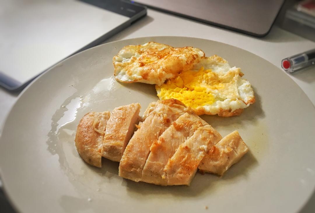 中午煎了个鸡胸肉,昨晚打破了3个鸡蛋,只好中午多吃蛋了