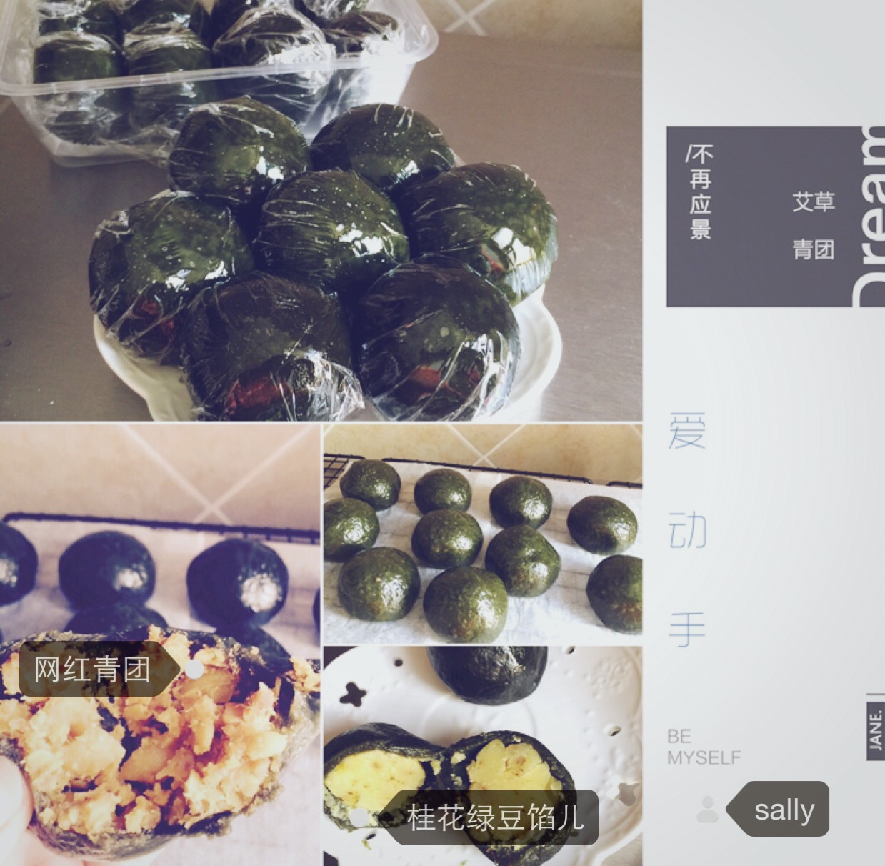 艾草粉+糯米粉+粘米粉+澄粉,没有一丝丝的肉松,就买的来伊份的猪肉丝对付了,可能原料不对,觉得一般~另外做了绿豆馅儿的,...