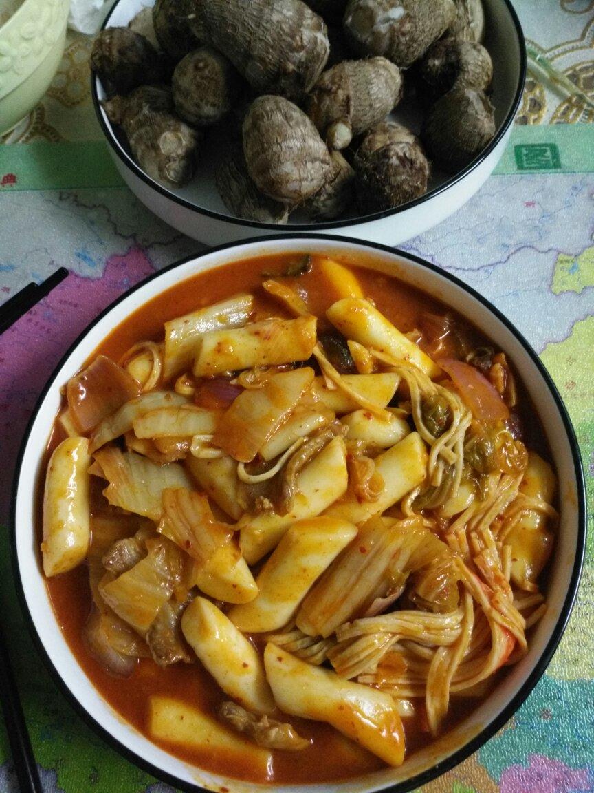 泡菜炒年糕&农家芋头和花生☺☺☺