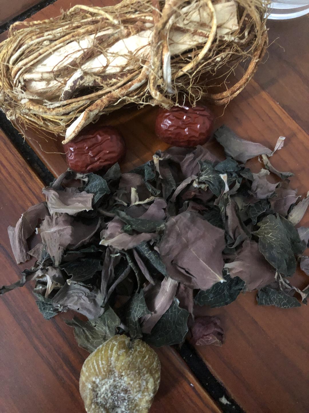 五指毛桃,金线莲叶,蜜枣,红枣炖瘦肉