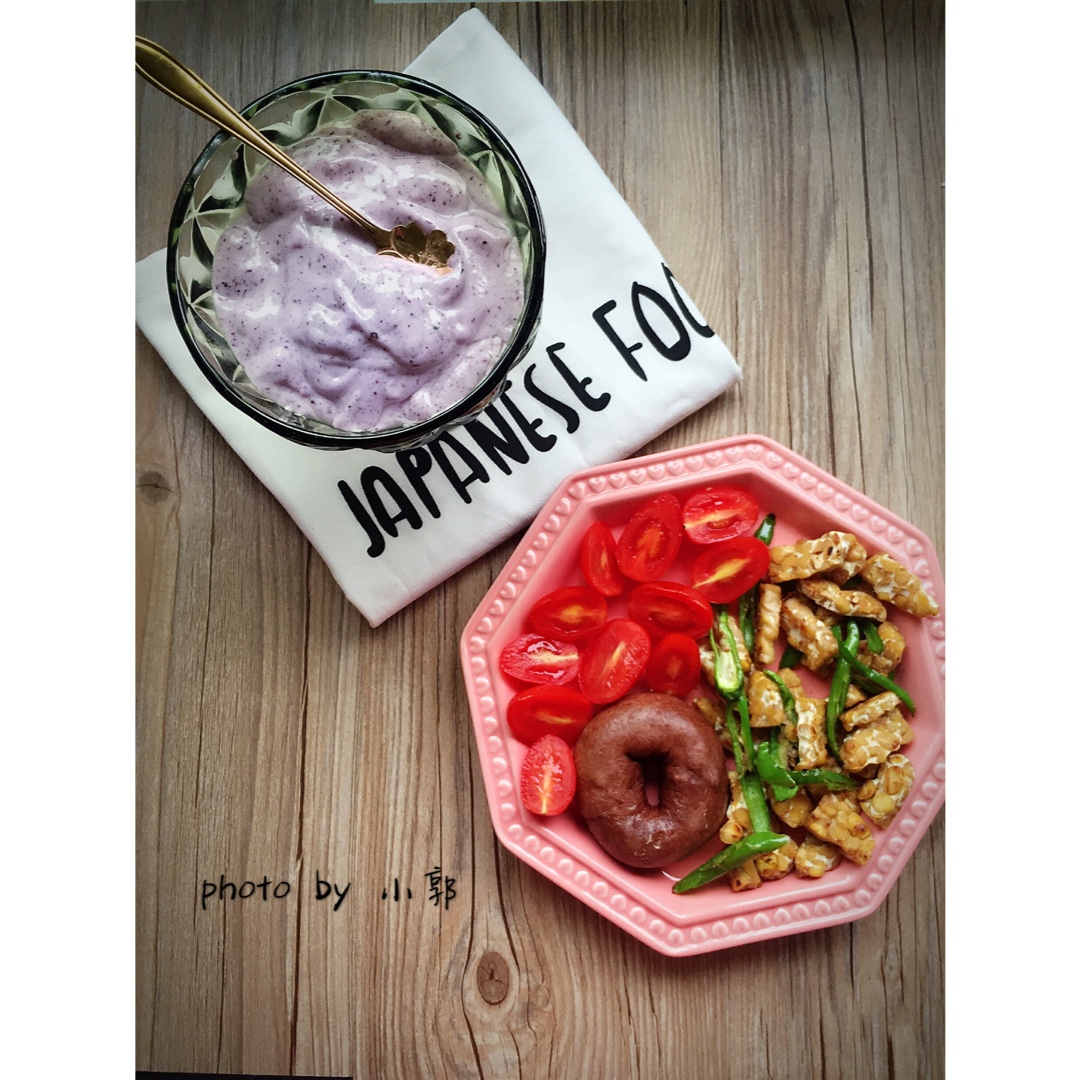 蓝莓“冰淇淋”口感的smoothie➕黑糖黑麦贝果➕青椒天贝