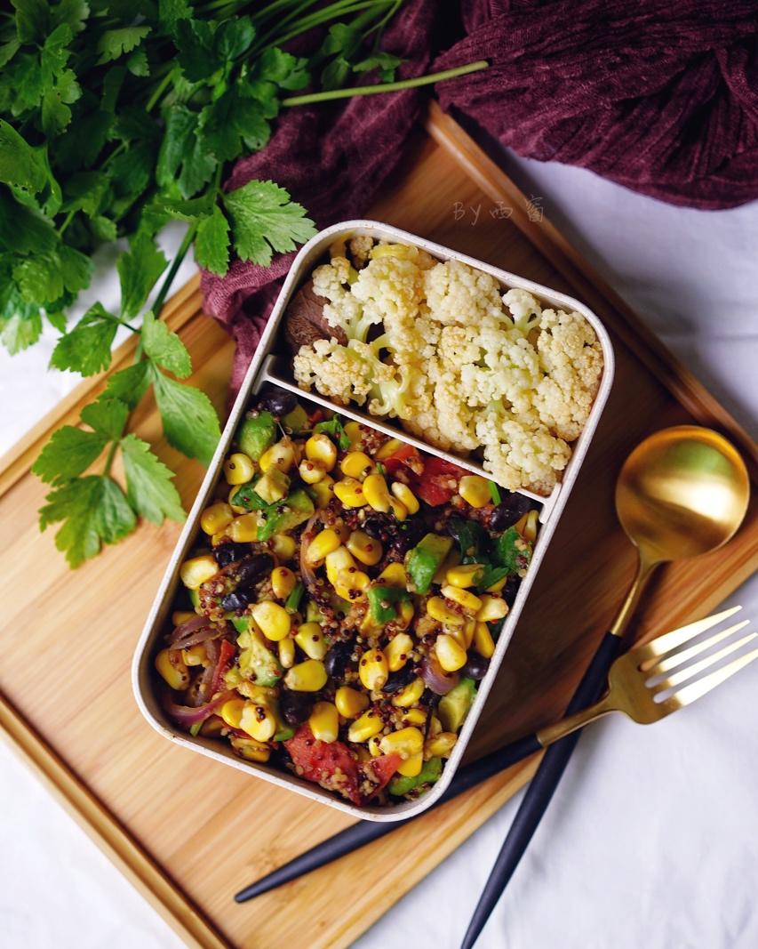 午餐便当,墨西哥藜麦饭,炒花菜,卤牛腱。
