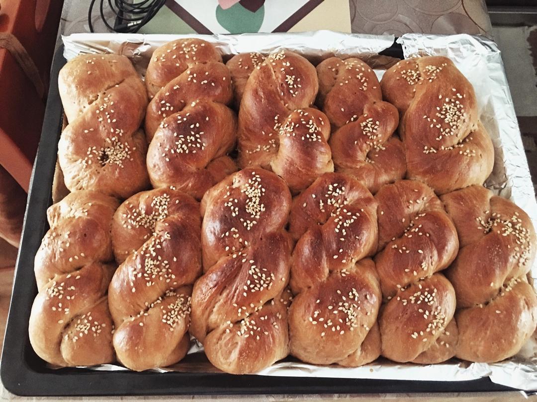 感谢配方,用的水合法就省的揉面那么久了。做出来感觉像是麻花样子的红糖面包,哈哈哈。做好后尝了一口,居然这个配方不是那么甜...