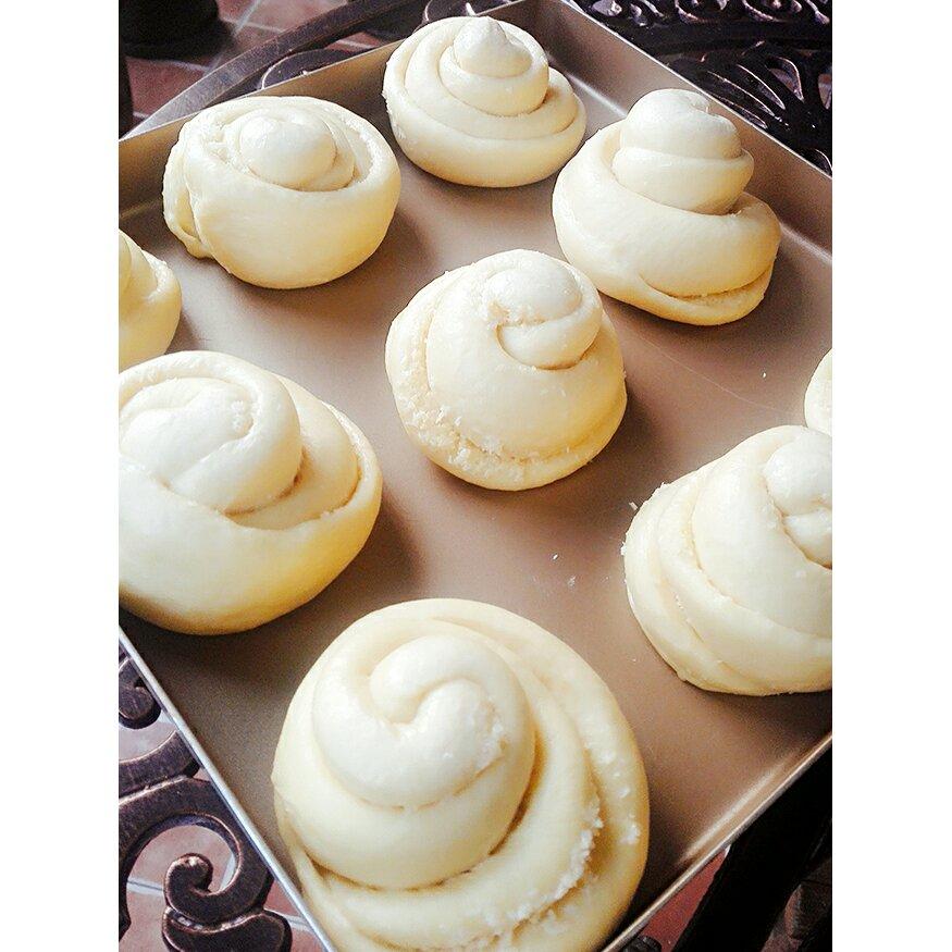烤前的椰蓉包,自己摸索的配方