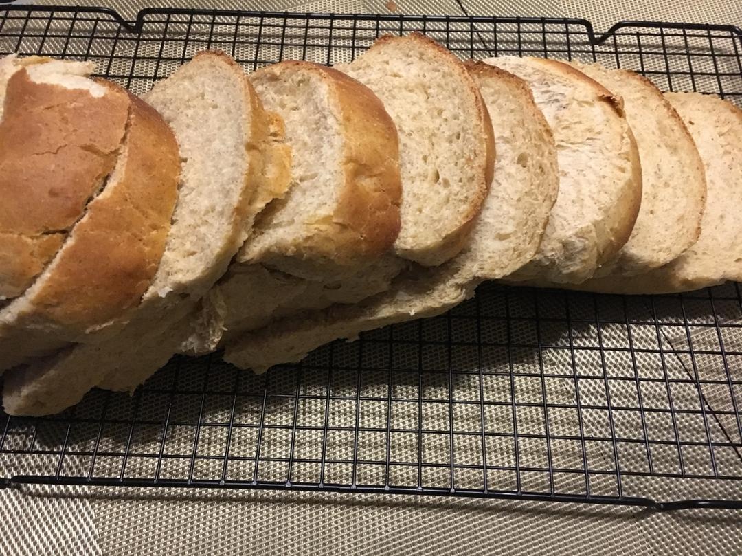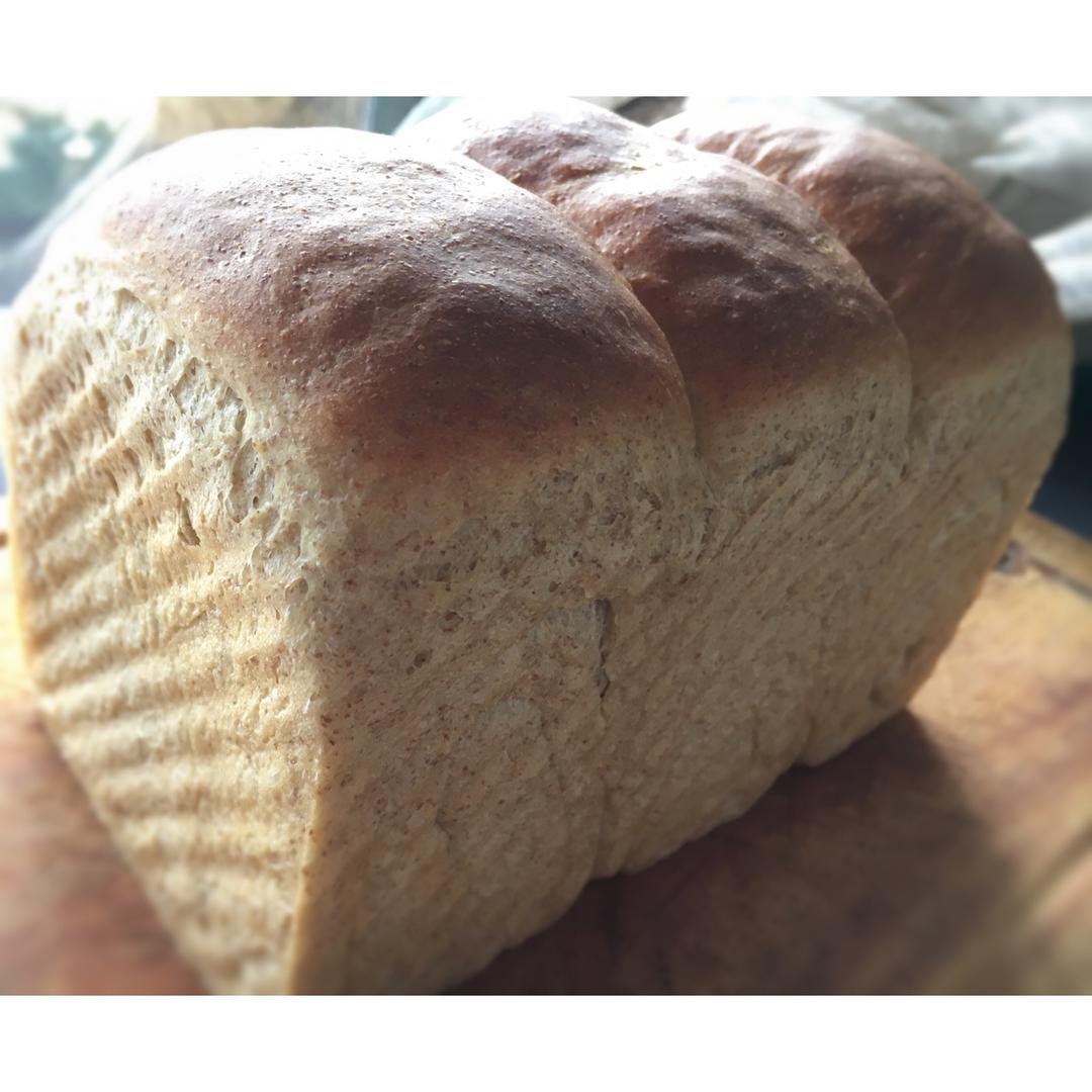 高粉300克,全麦粉65克,奶粉20克,水160克,蛋一个,盐2克,糖25克,酵母4克,玉米油30克。第一个全麦土司! ...