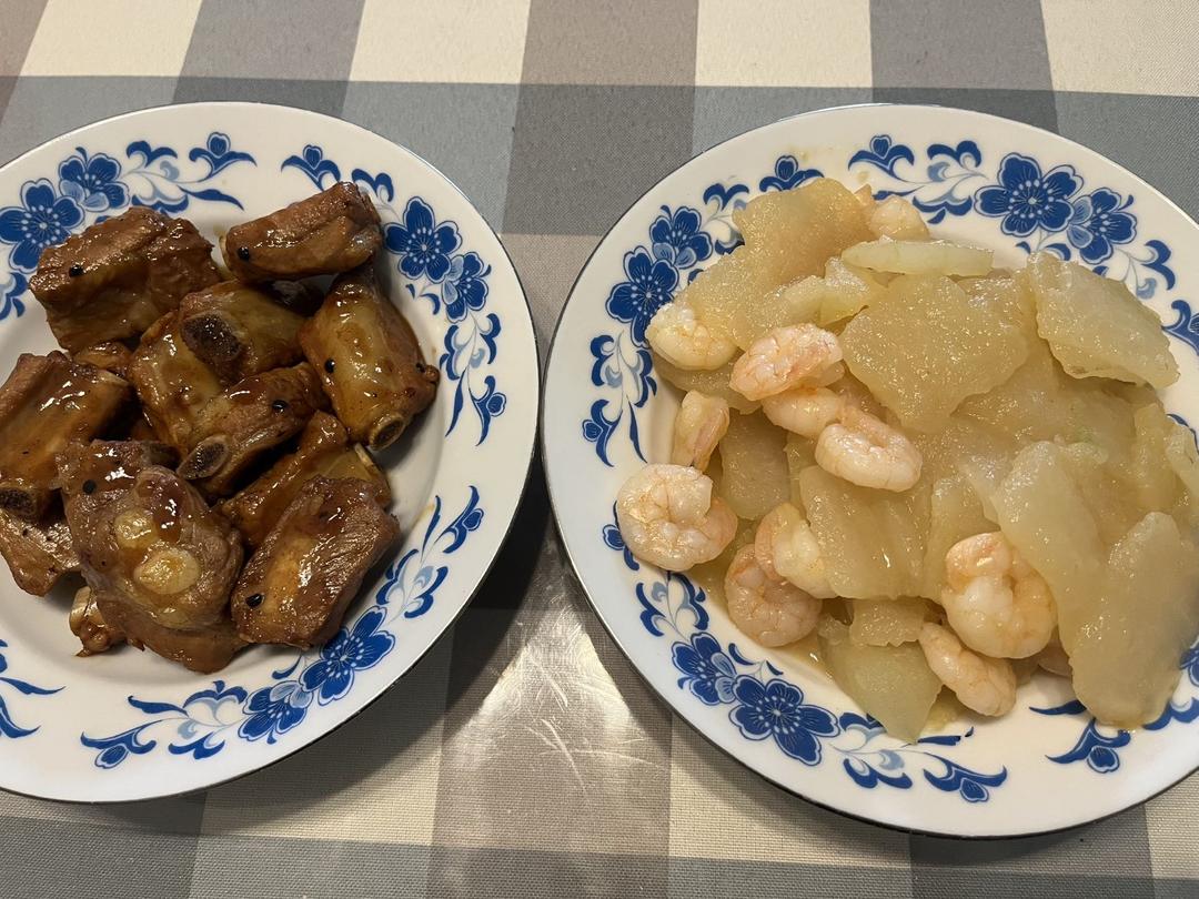 排骨、冬瓜虾仁、白米饭。2026.01.19午餐。