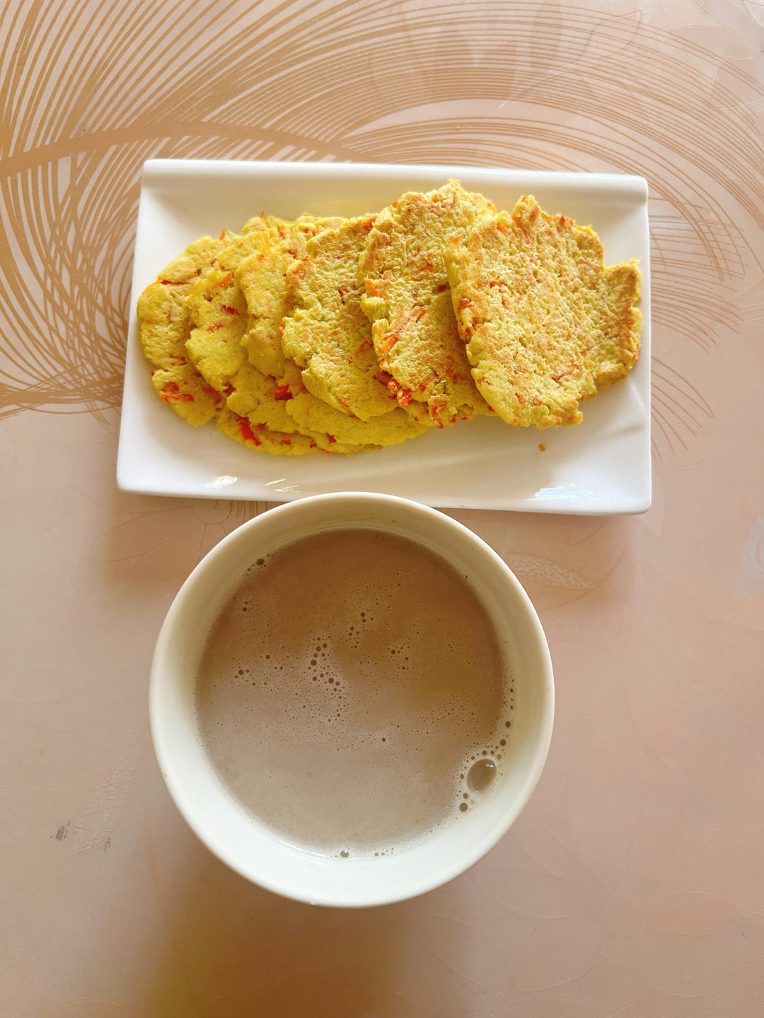 芹菜胡萝卜鸡蛋饼🫓,南瓜子奇亚籽鹰嘴豆豆浆