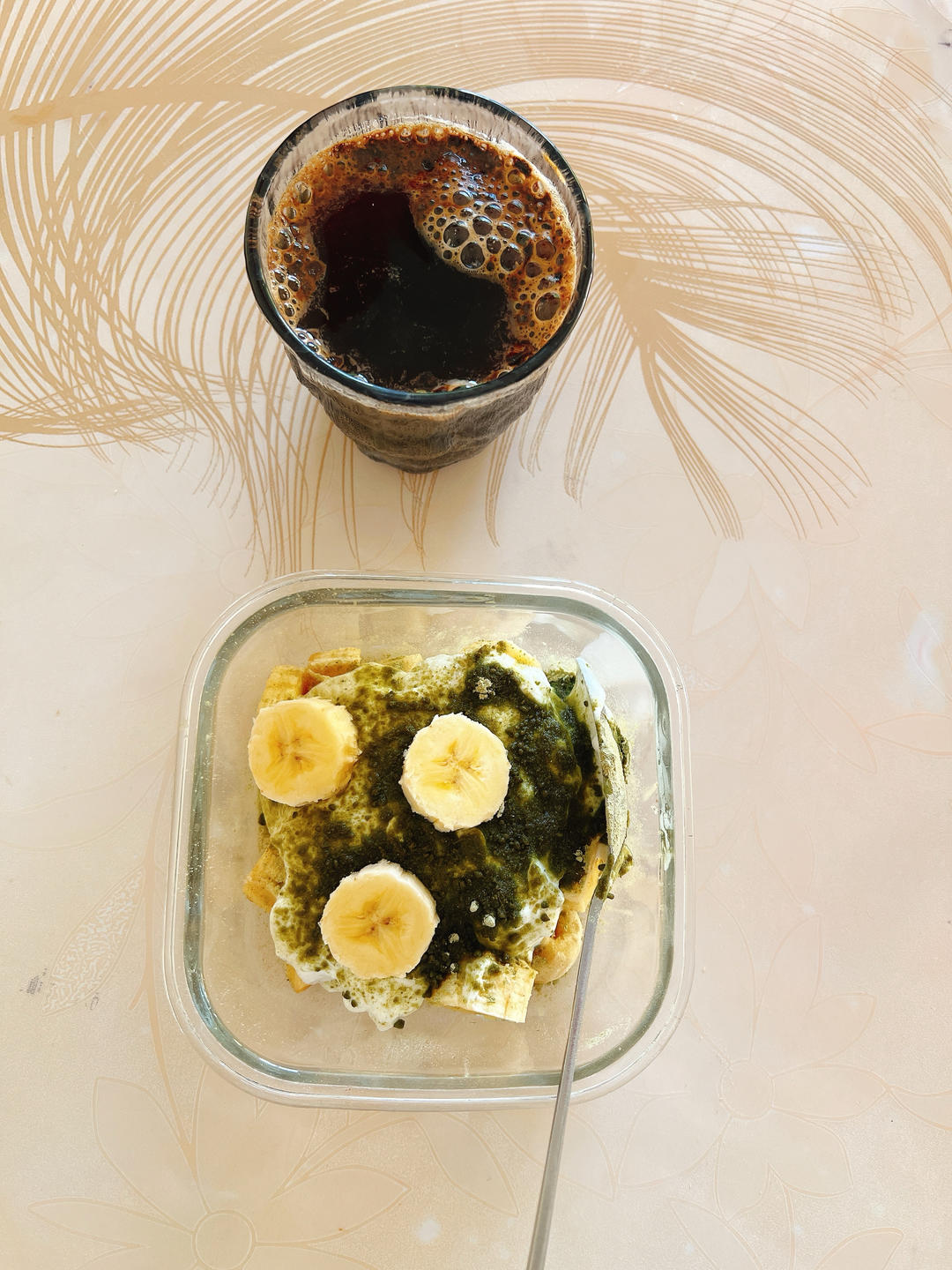 羽衣甘蓝粉拌香蕉🍌,轻椰黑咖啡☕