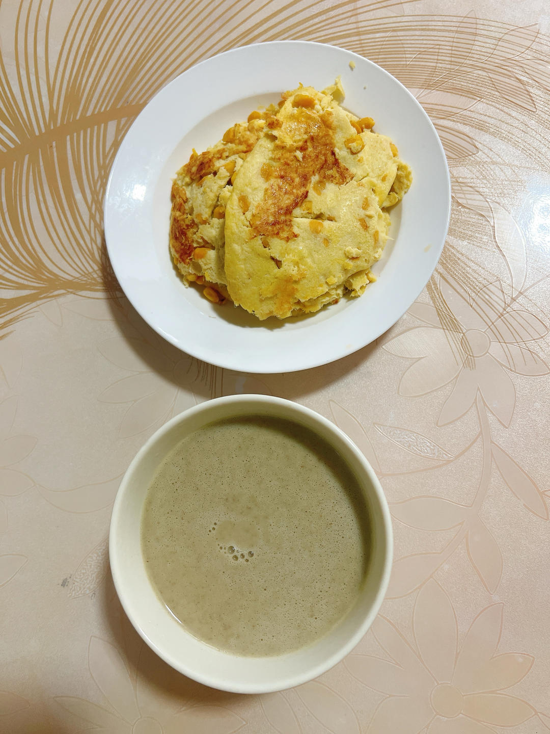 鸡蛋芹菜玉米饼,奇亚籽南瓜籽鹰嘴豆豆浆
