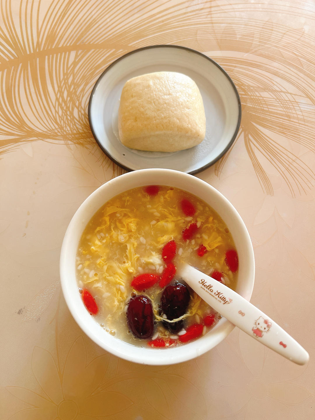 酒酿鸡蛋羹,无糖全麦馒头