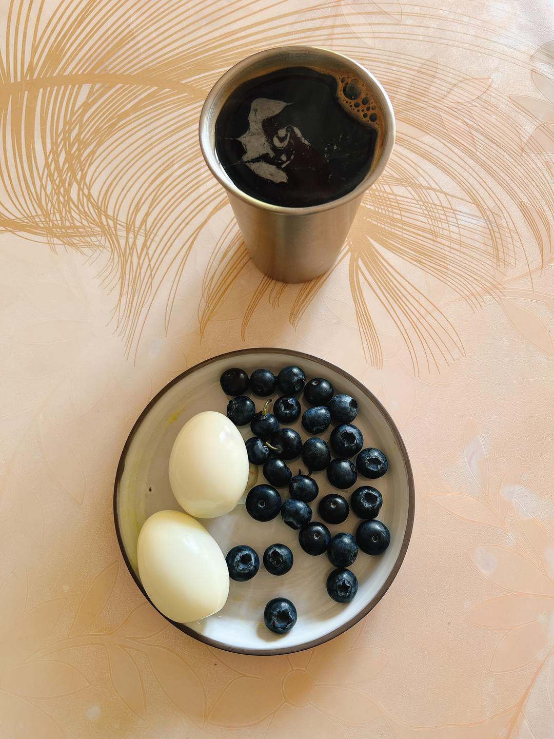 水煮蛋🥚,蓝莓🫐,轻椰黑咖啡☕