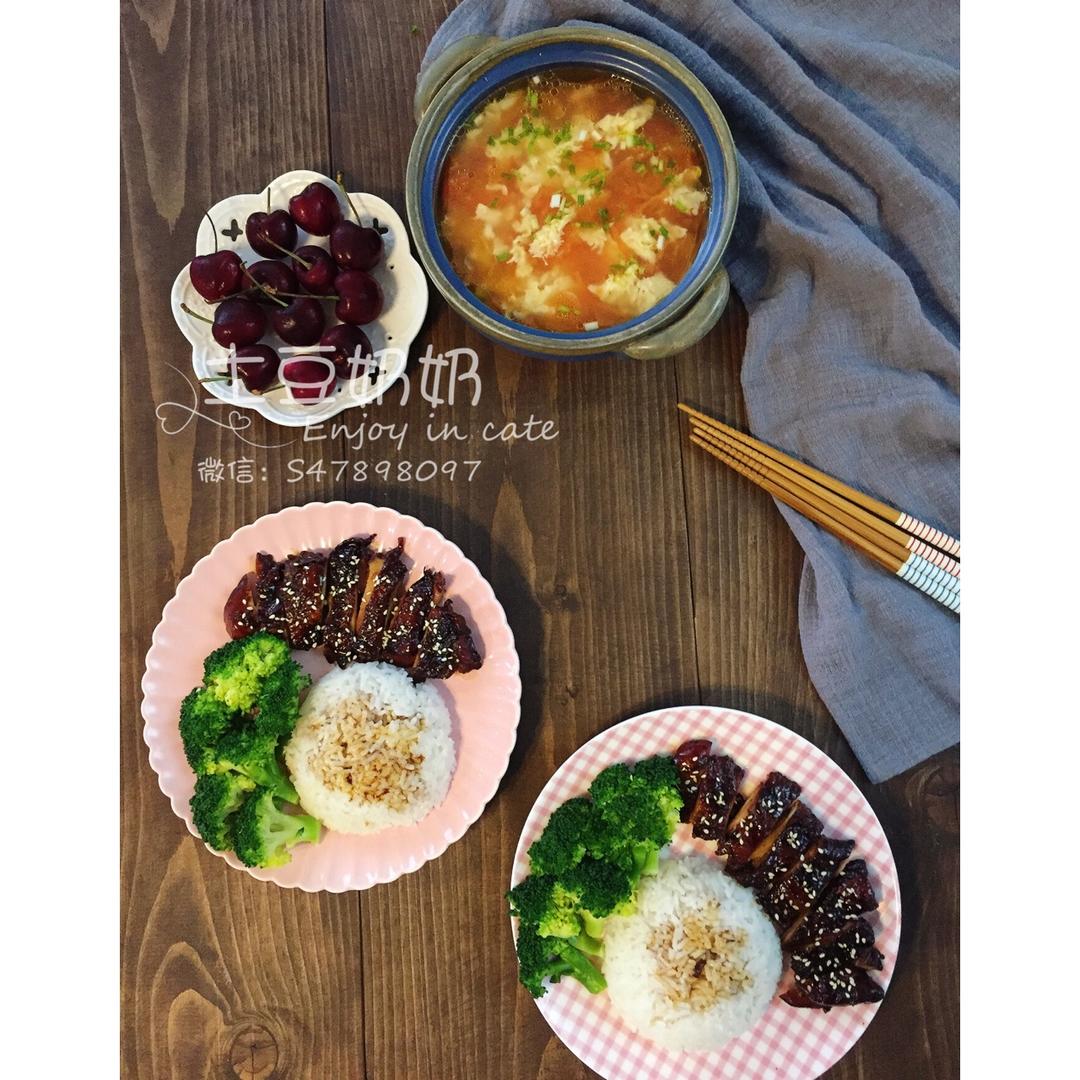 照烧鸡腿饭,番茄蛋汤