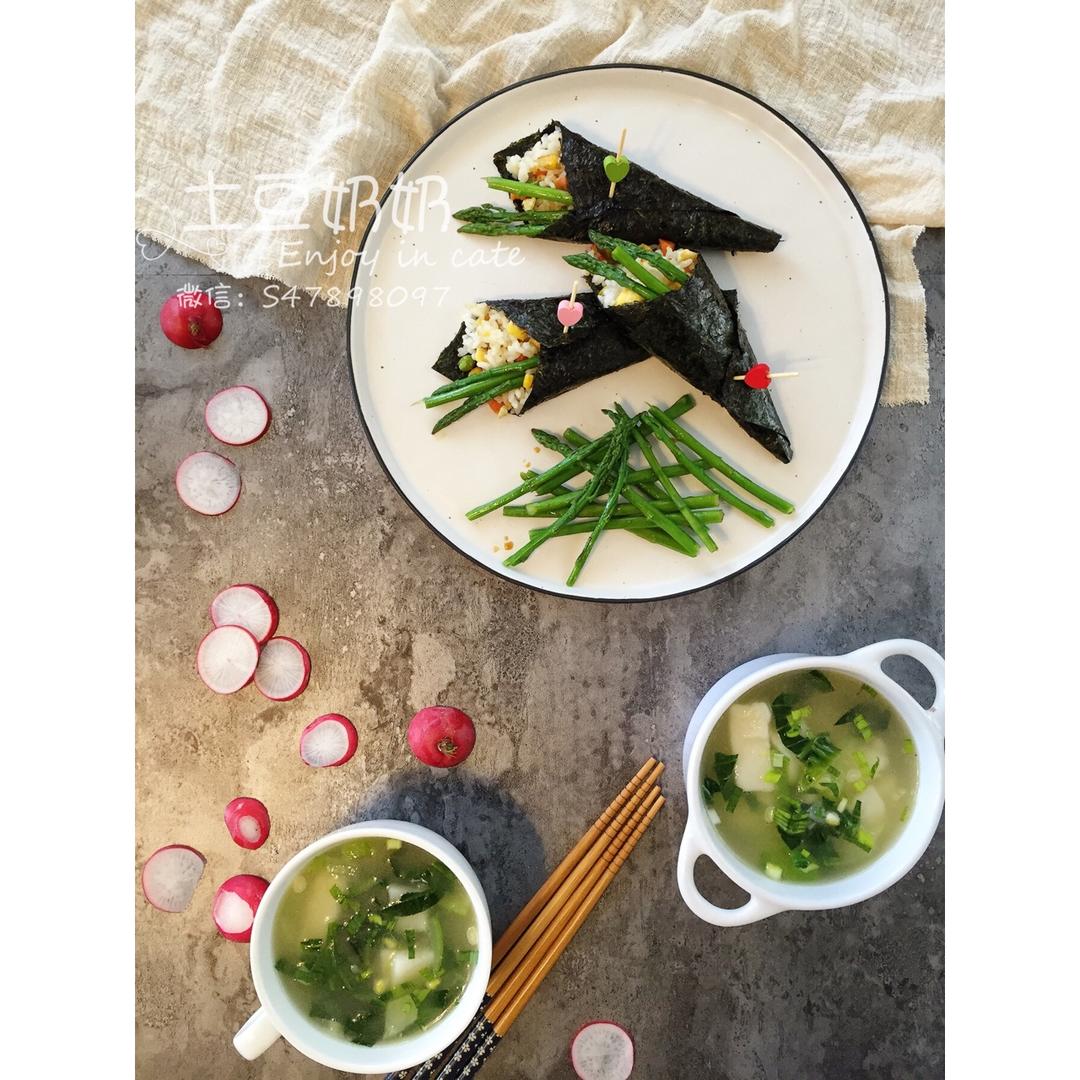 海苔什锦饭卷,青菜年糕汤 #早餐•2017年1月...