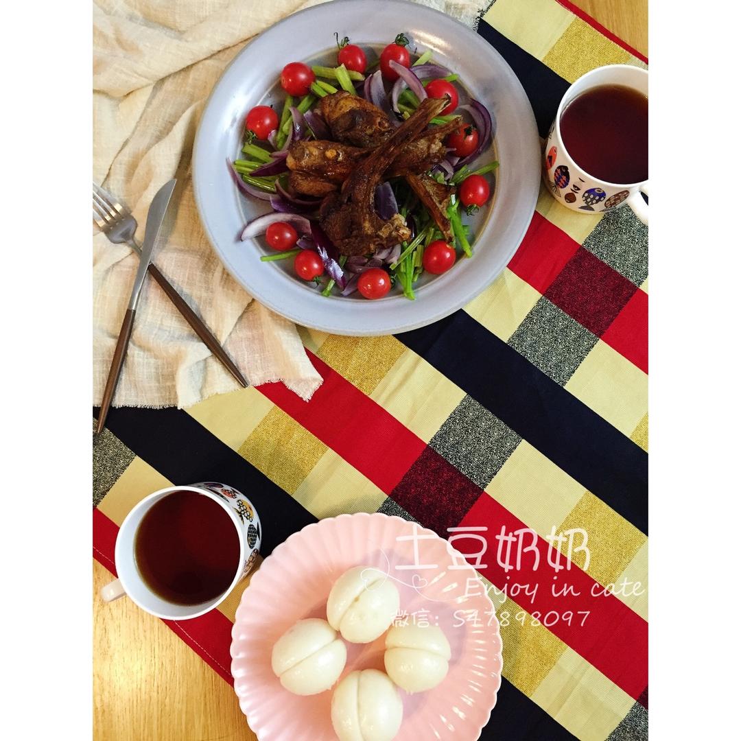 煎小羊排,酒酿饼,红茶 #早餐•2017年2月1...