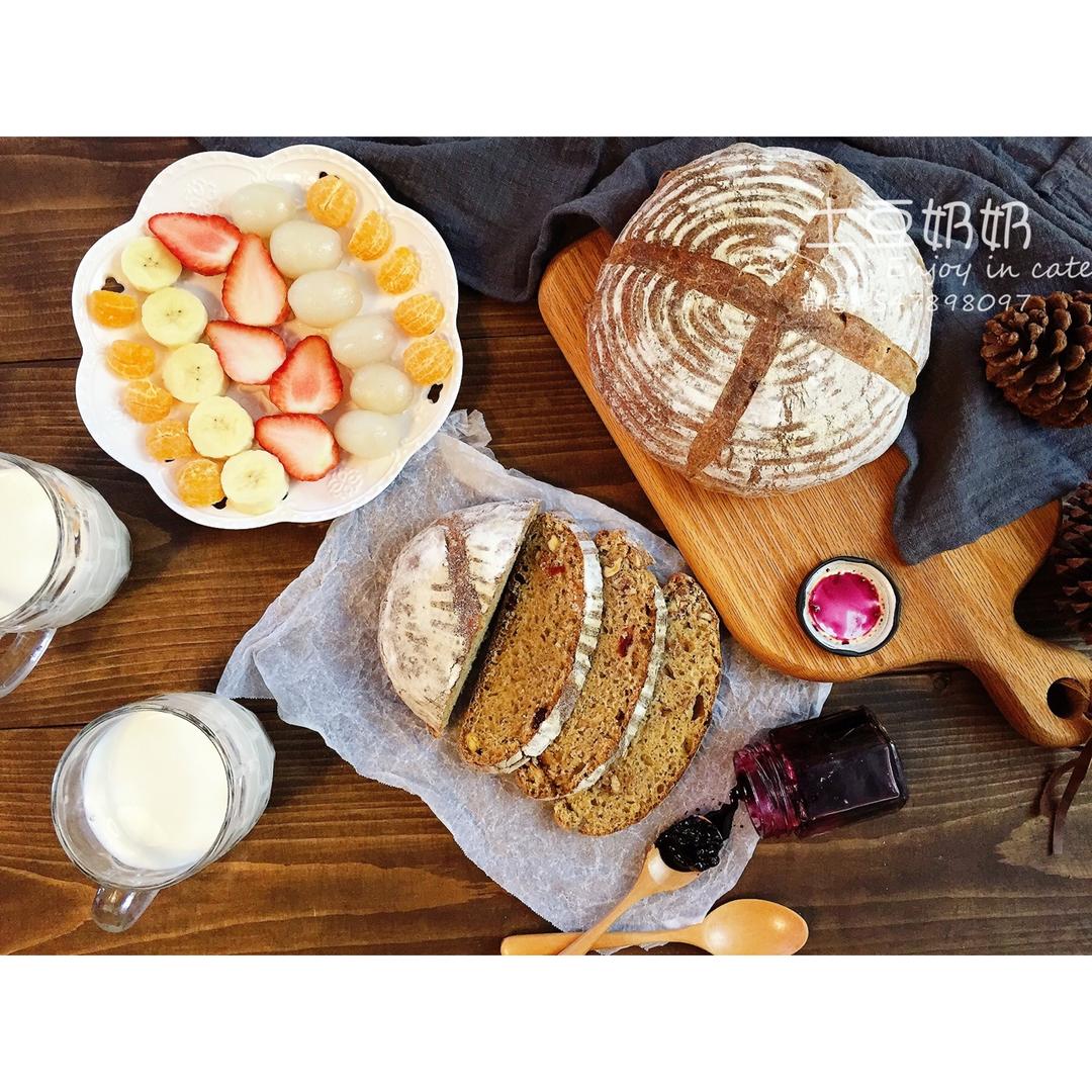蔓越梅核桃欧包,牛奶,水果盘 #早餐•2017...