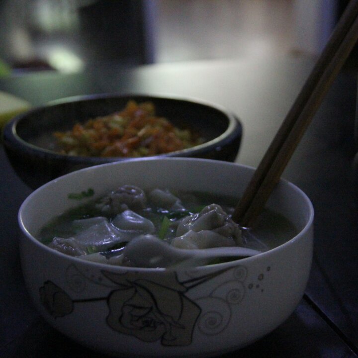 馄饨,胡萝卜炒鸡蛋。