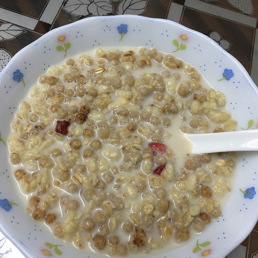 大晚上肚子饿,吃点卡了比麦片配牛奶吧!