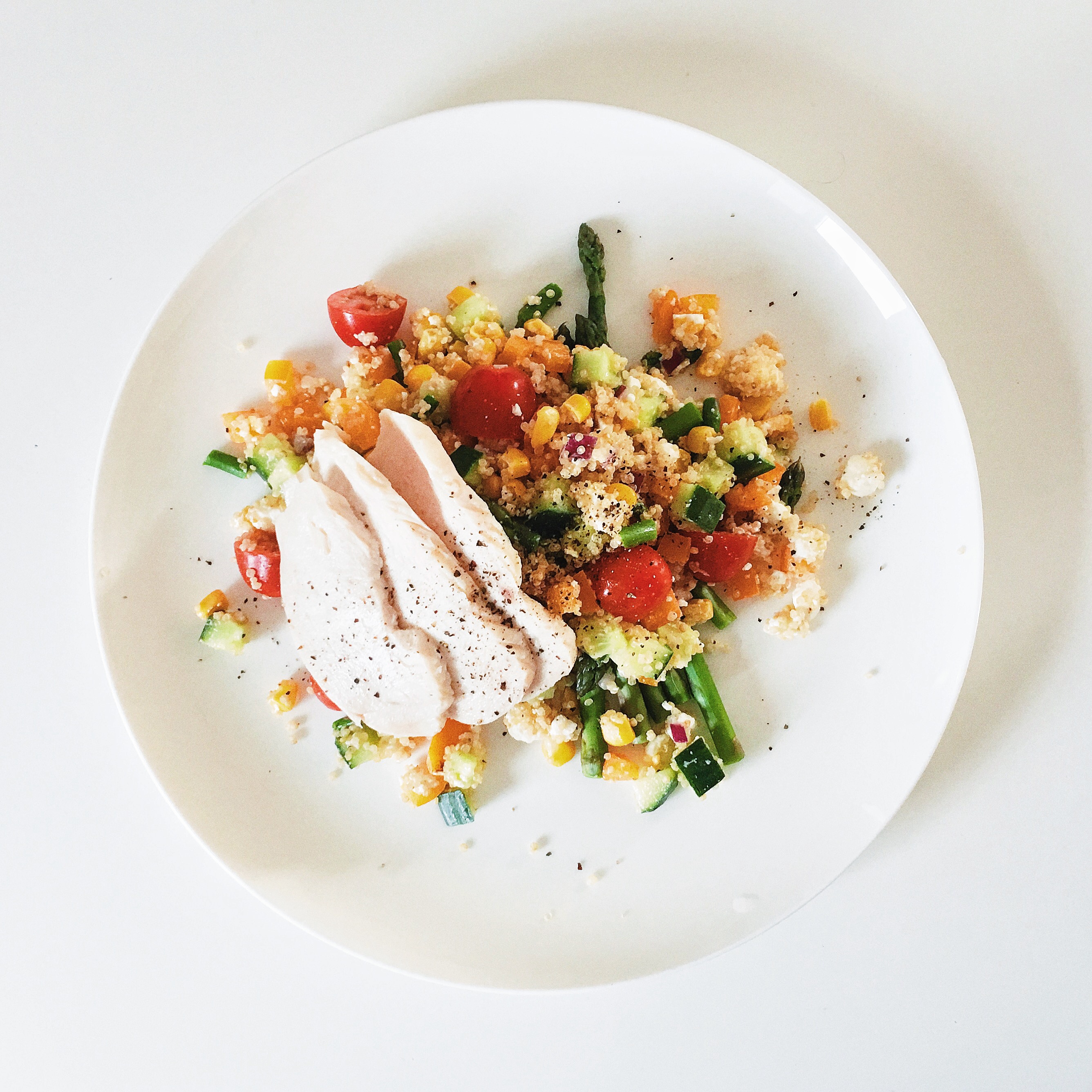 黎麦feta沙拉 浓郁的奶酪味配上清甜的蔬菜 Too cool for the summer 🌞 #晚餐•2016年6月...