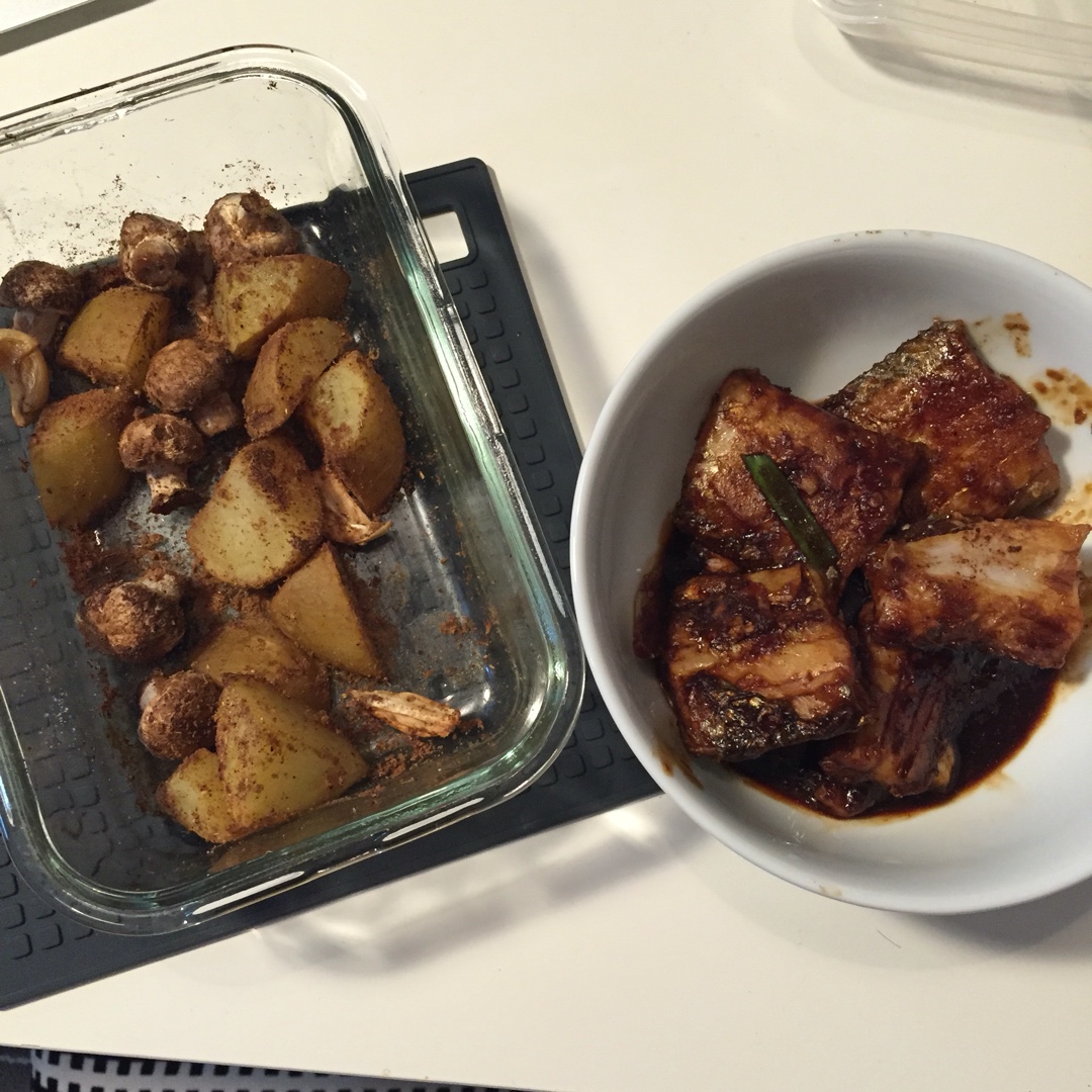 孜然烤土豆和蘑菇,红烧带鱼
