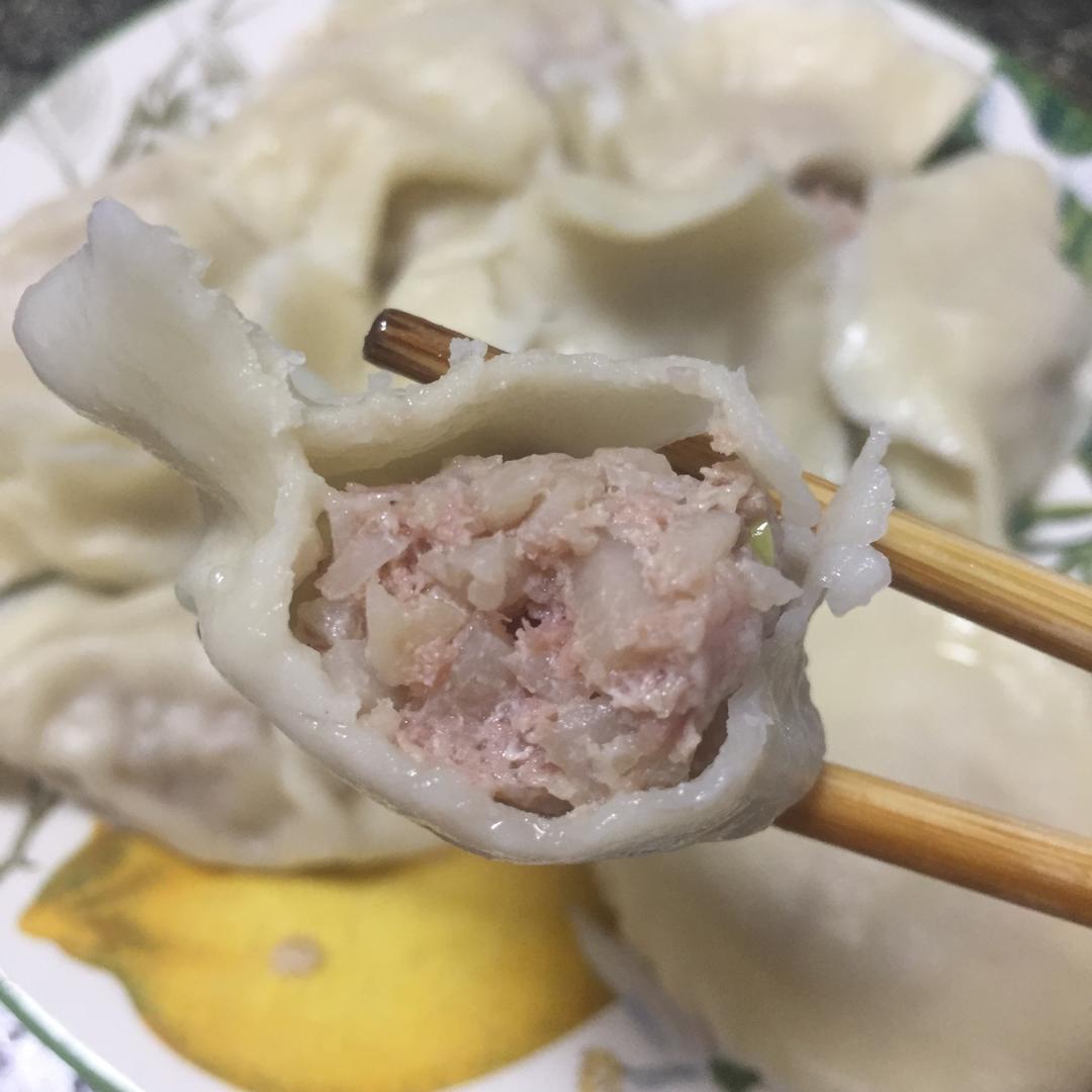 放的藕捏饺子,蘸上去年泡的腊八蒜,太好吃了,万能馅