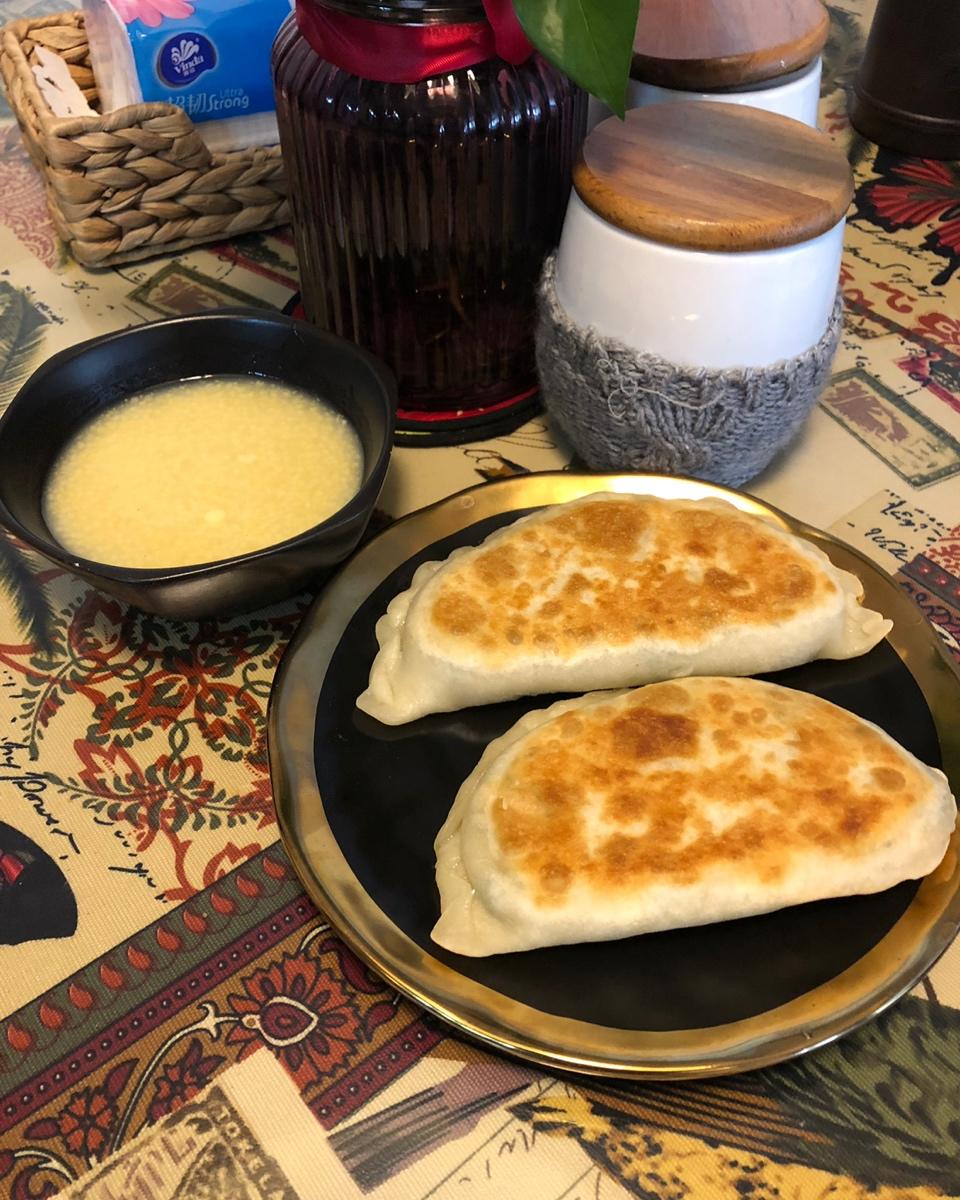 韭菜盒子+小米玉米糁粥~~~