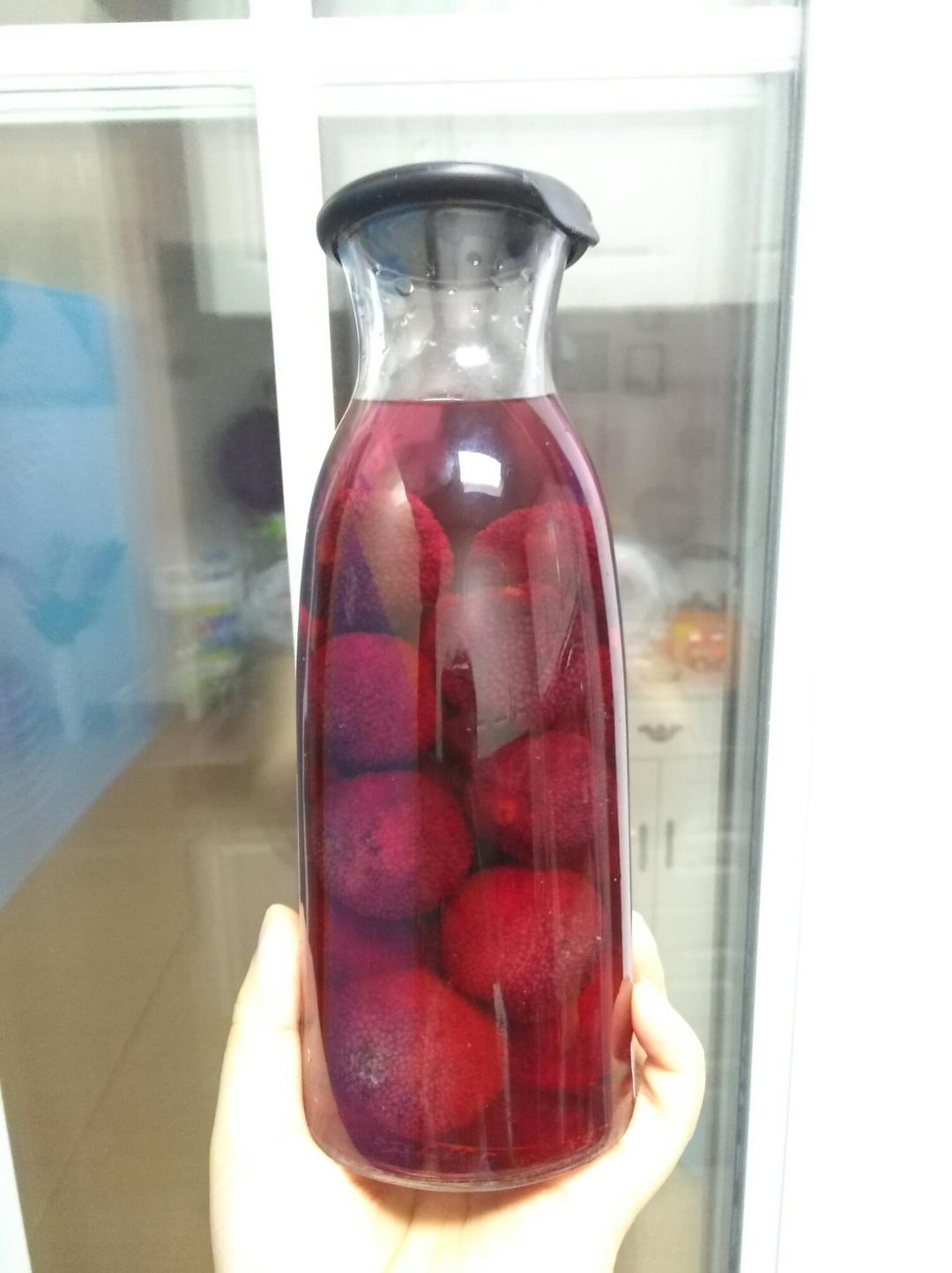 泡的杨梅酒,颜色好美腻!饺子就酒,越吃越有!哈哈哈