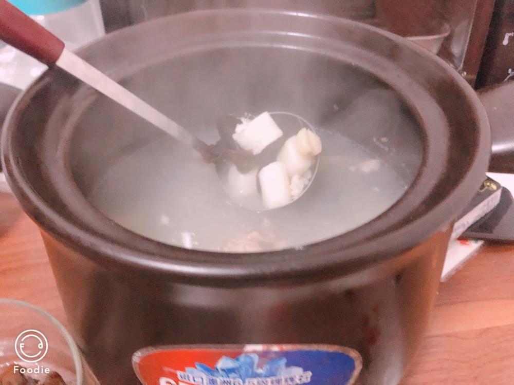 用电压力锅煮的,方便。用砂锅煮没时间看着调火,鸡是上次整只老母鸡剩下的半边,剁成块,洗净了,还是有一些浮沫,这是没有明火...