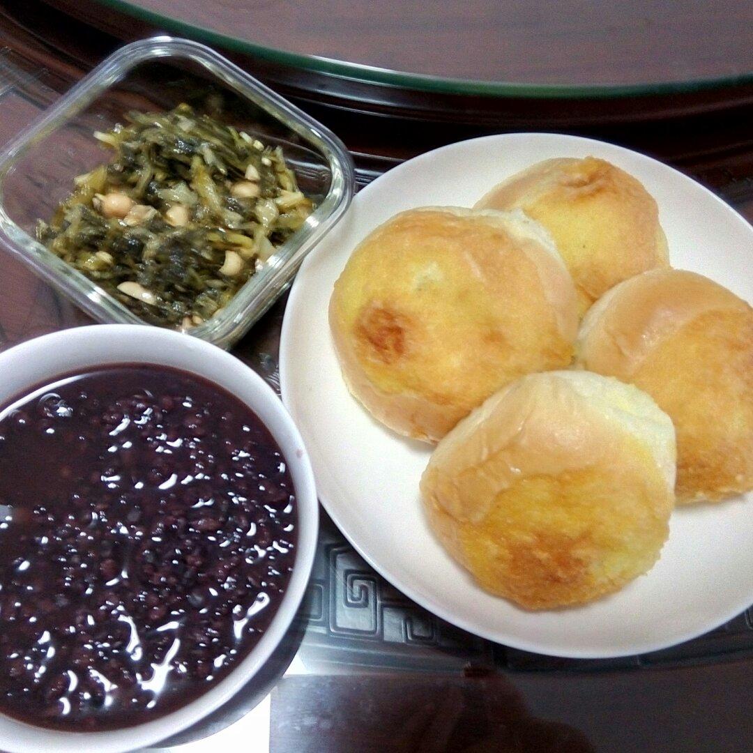 黑米粥+菠萝包+咸菜花生