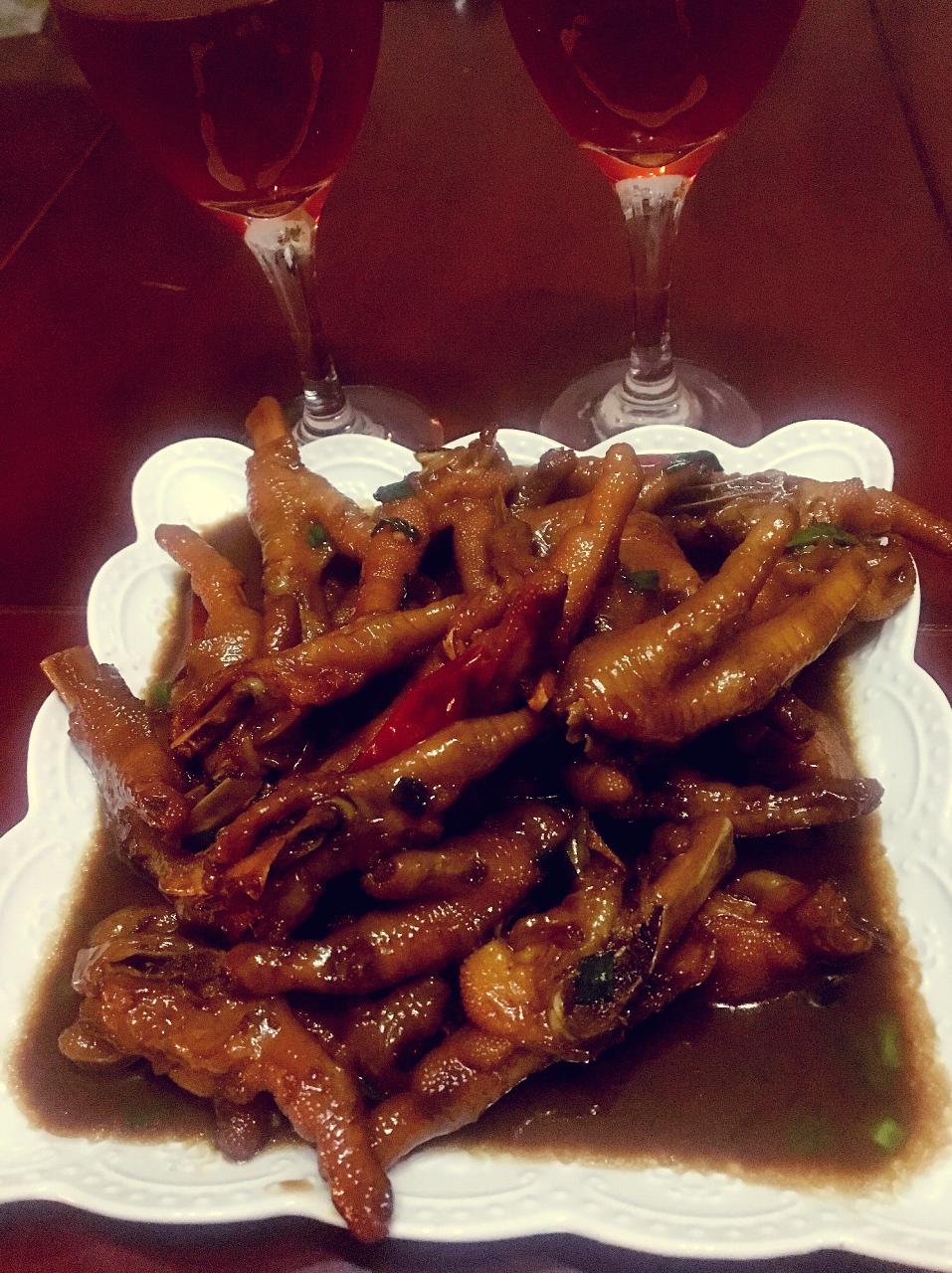 美酒夜光杯🍷搭香辣鸡爪😂