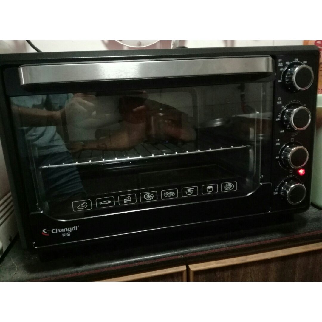 用酱汁(含酱油、料酒、醋)腌制一个上午,烤前抹上黄油和胡椒,鸡肚子放了香菇、大蒜,因为家人...