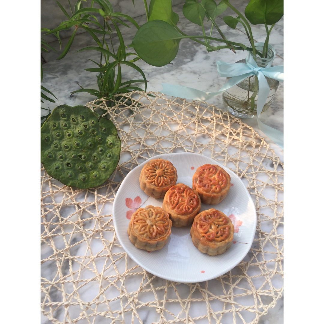 第一次做月饼稍微有点失误,皮和馅按照比例不够分了,最后成品重量不够50克,所以月饼边缘不够立体,但还是比较成功,味道很棒...